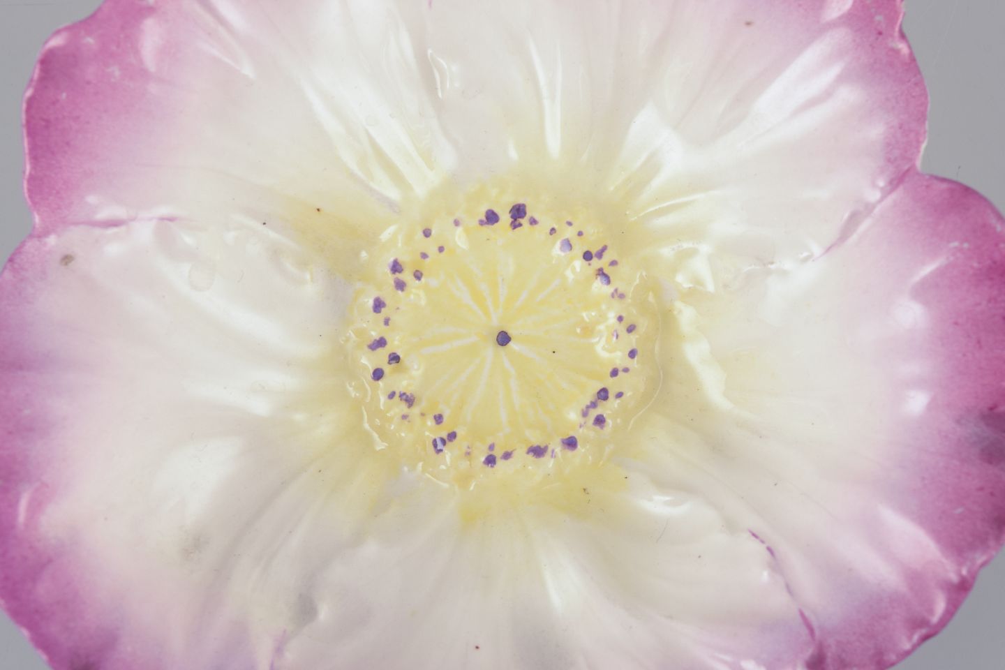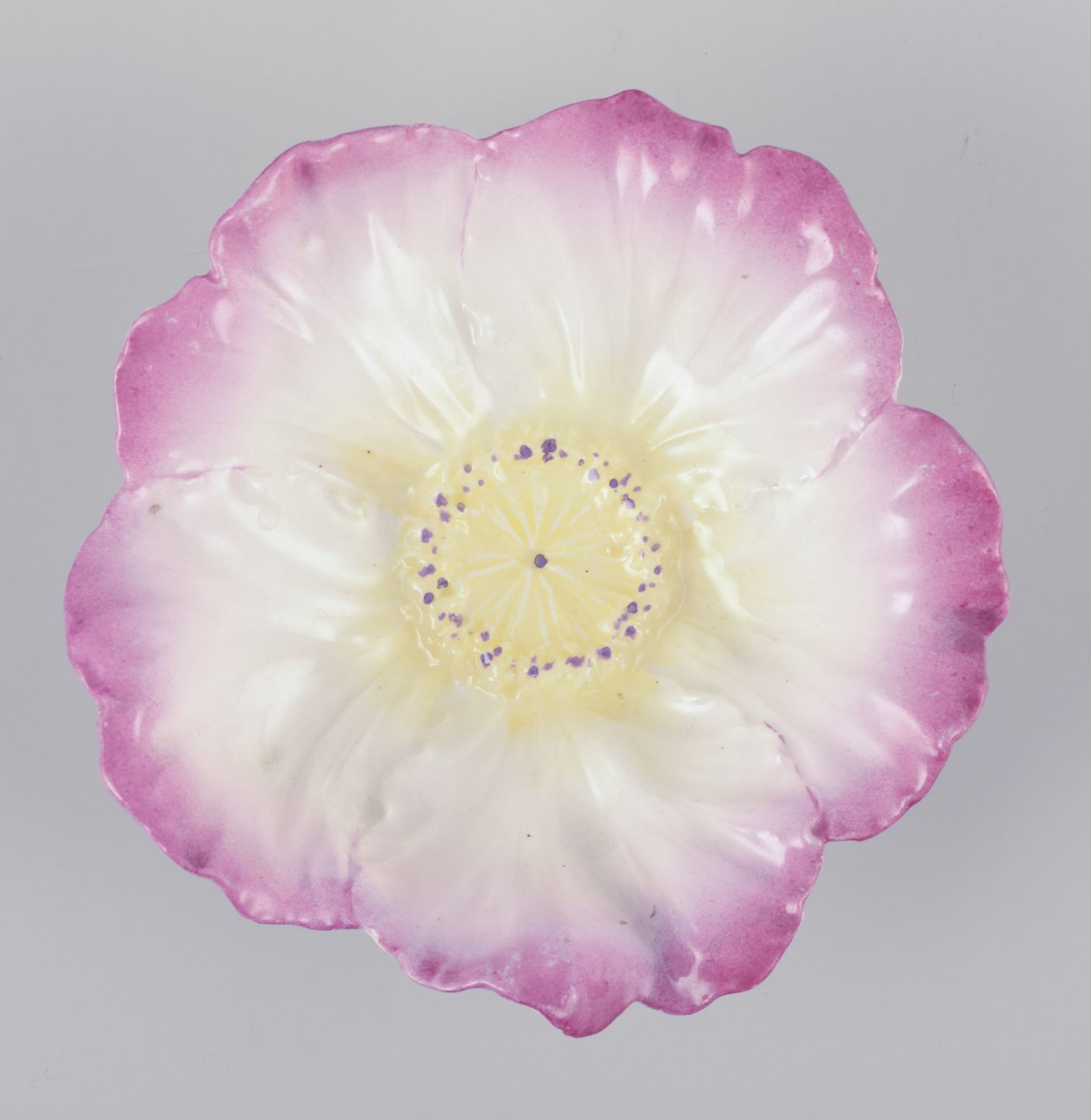 Blomstermotiv. Håndmalet i gult og lyserødt.
