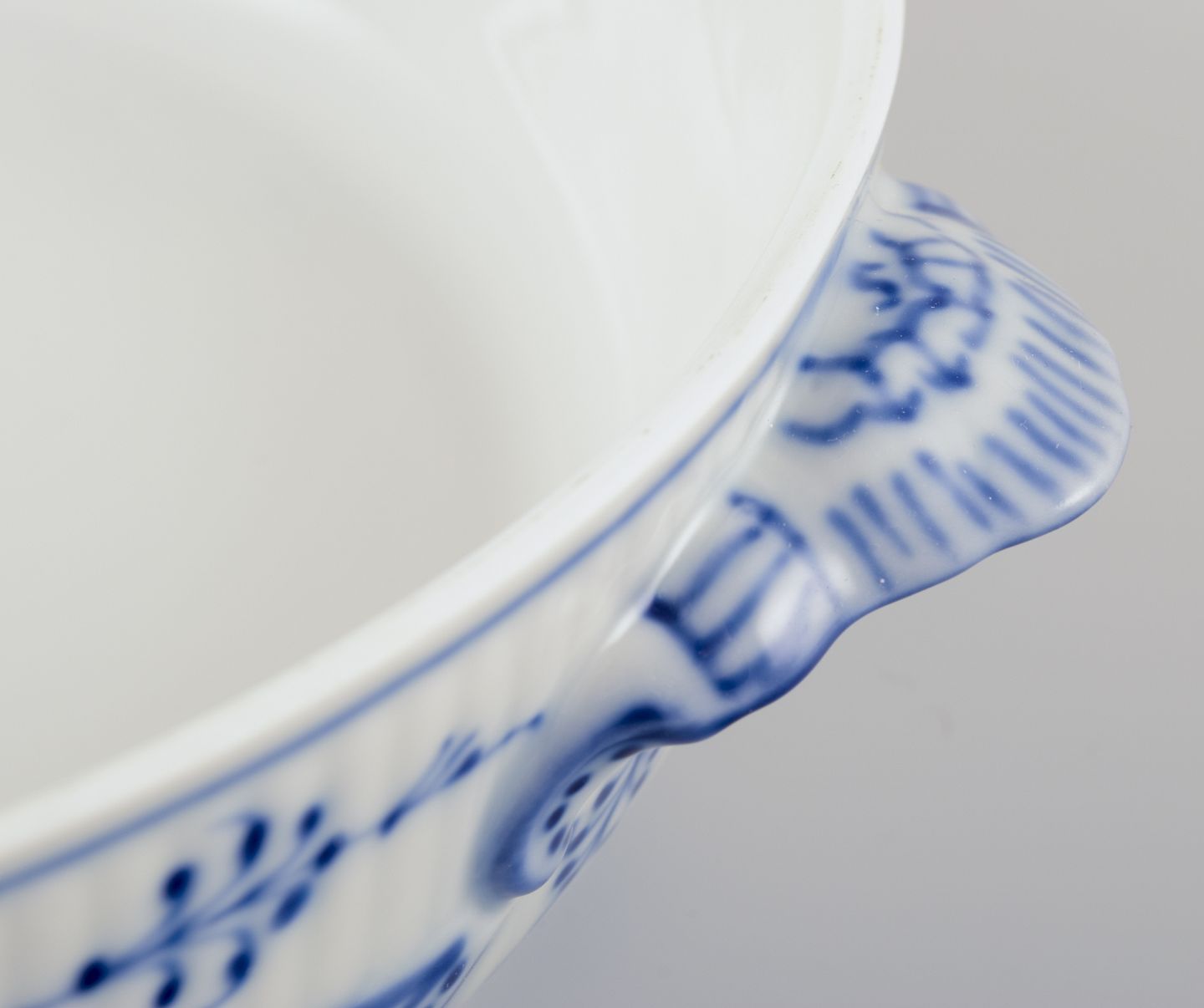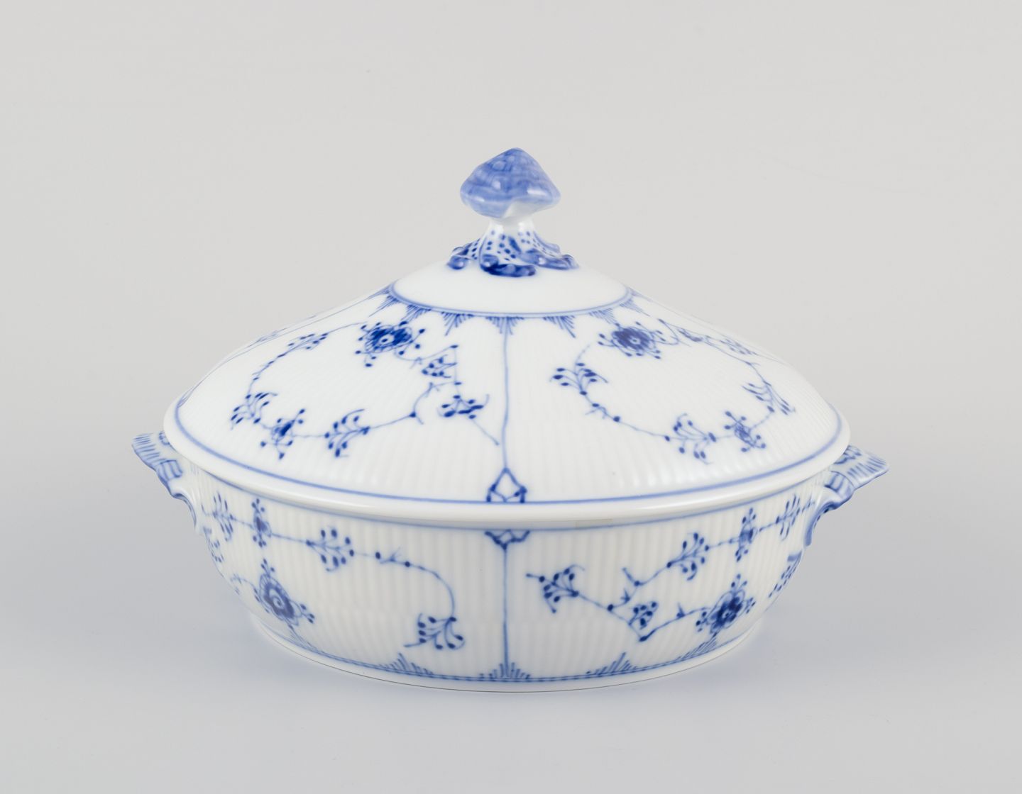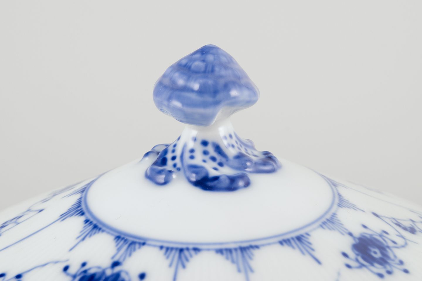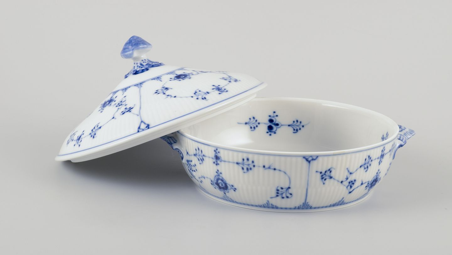 Musselmalet (also known as “Blue Fluted”) is a classic porcelain pattern from Royal Copenhagen, first introduced in 1775. Inspired by Asian porcelain, it is characterized by its blue hand-painted decorations on a white background. The pattern comes in several versions, including Full Lace, Half Lace, and Plain (Blue Fluted Plain). Musselmalet is an iconic symbol of Danish design and craftsmanship and remains popular and in production to this day.