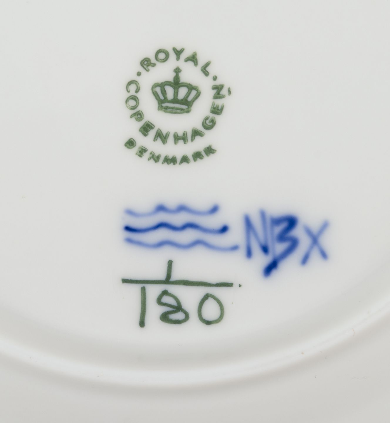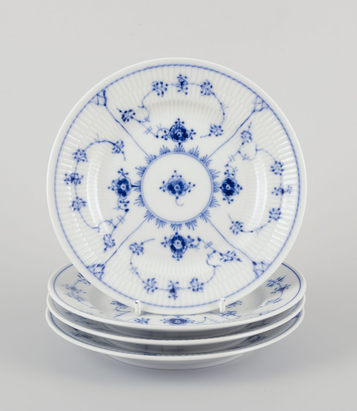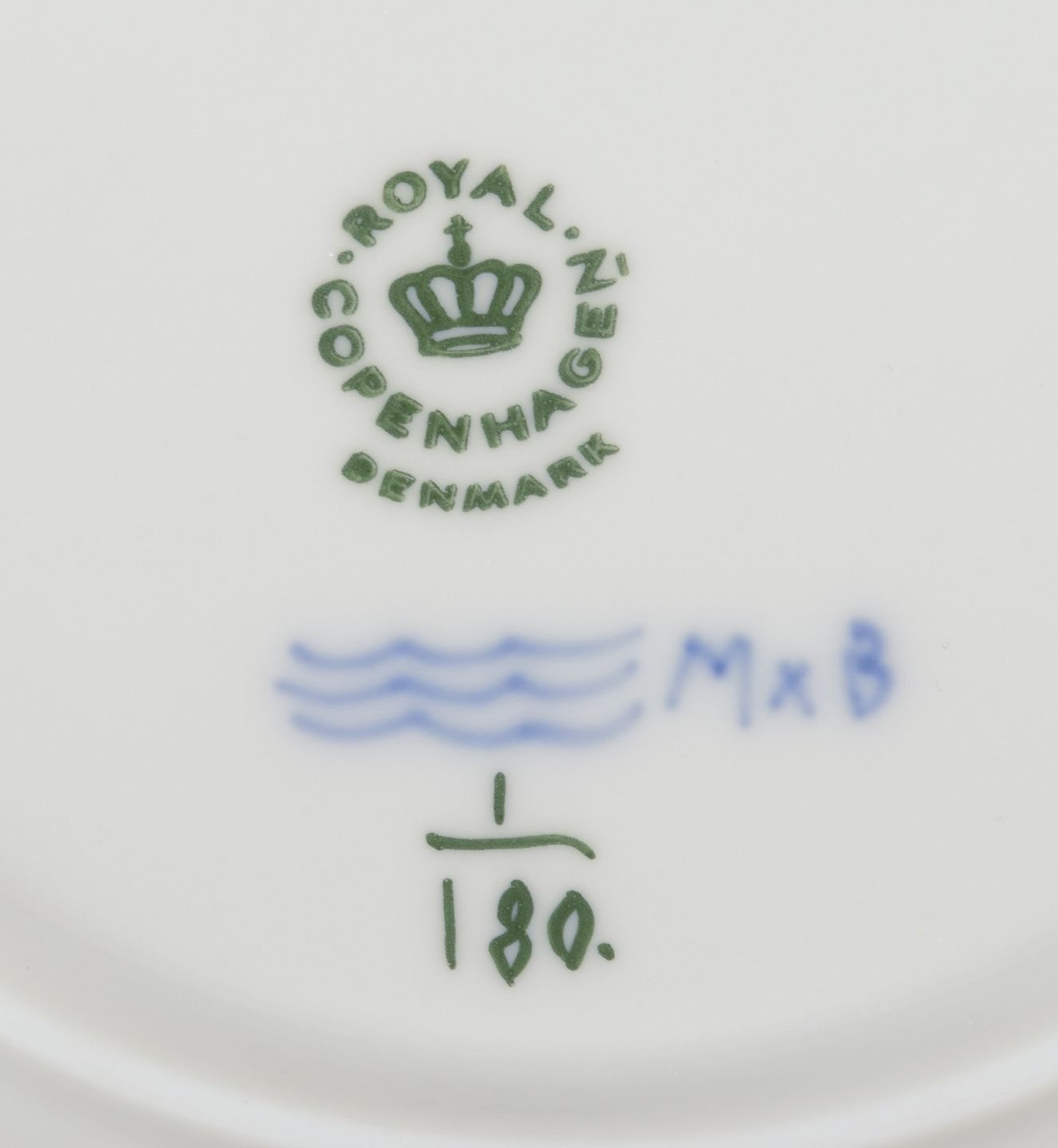Musselmalet (also known as “Blue Fluted”) is a classic porcelain pattern from Royal Copenhagen, first introduced in 1775. Inspired by Asian porcelain, it is characterized by its blue hand-painted decorations on a white background. The pattern comes in several versions, including Full Lace, Half Lace, and Plain (Blue Fluted Plain). Musselmalet is an iconic symbol of Danish design and craftsmanship and remains popular and in production to this day.