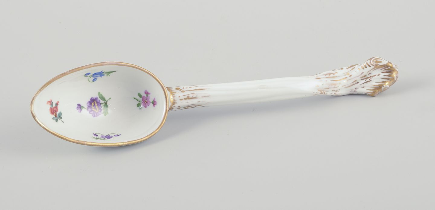 Meissen, Tyskland. Stor antik ske af porcelæn.