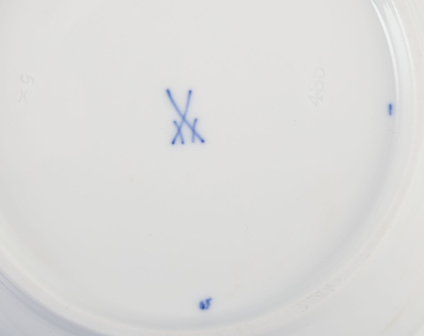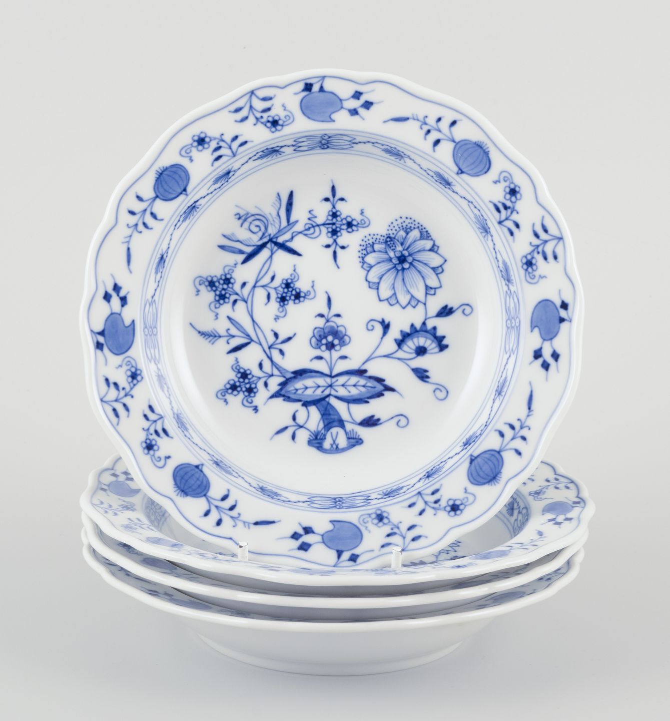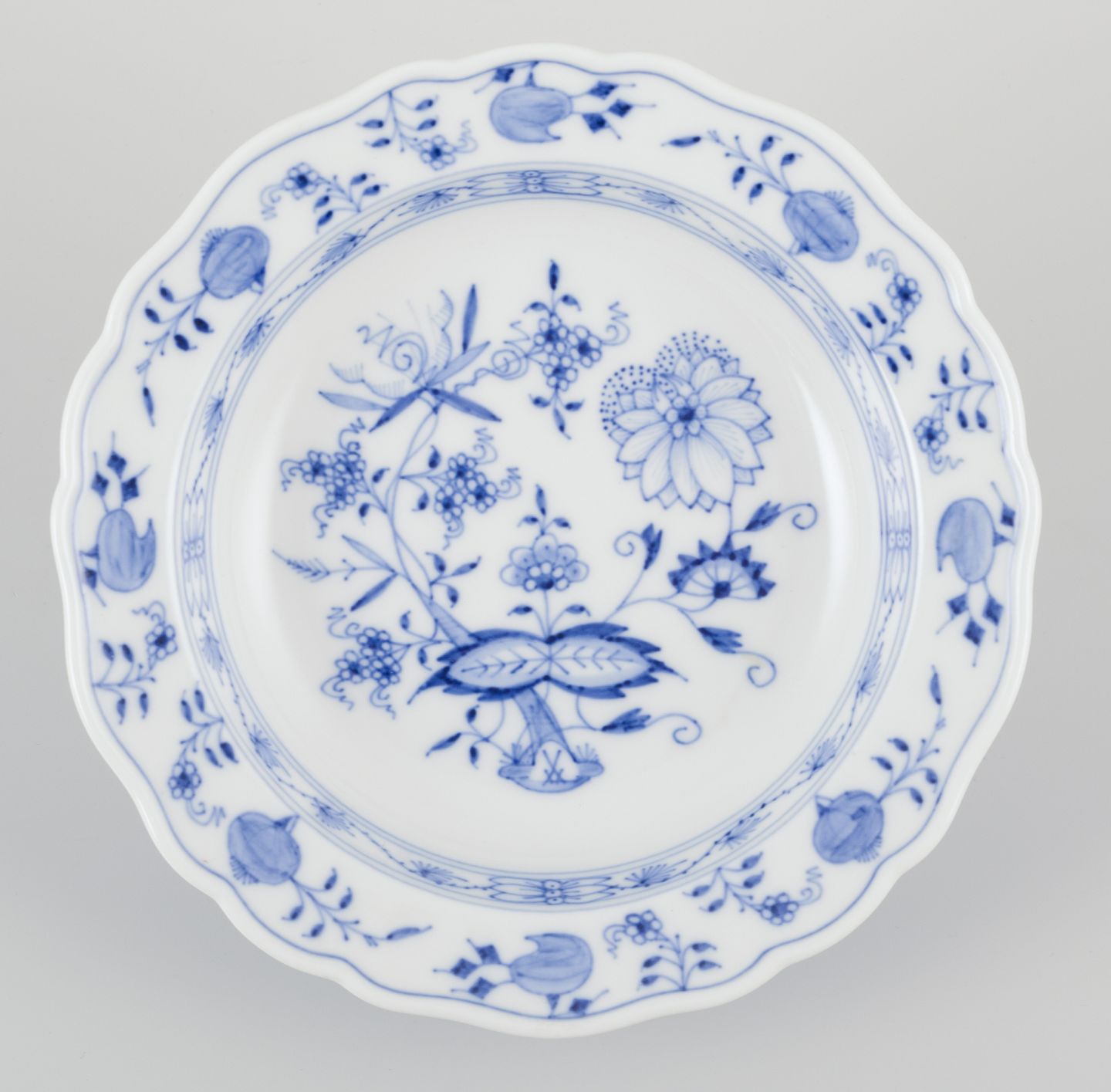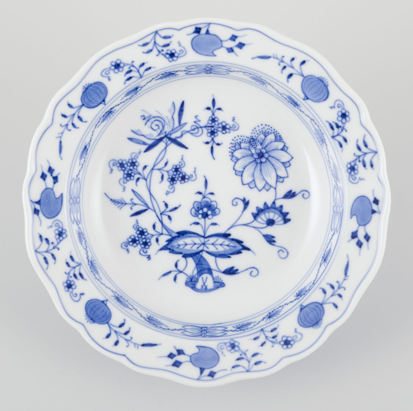 Meissen, Tyskland. Et sæt på fem små løgmønstrede tallerkener af porcelæn.