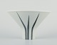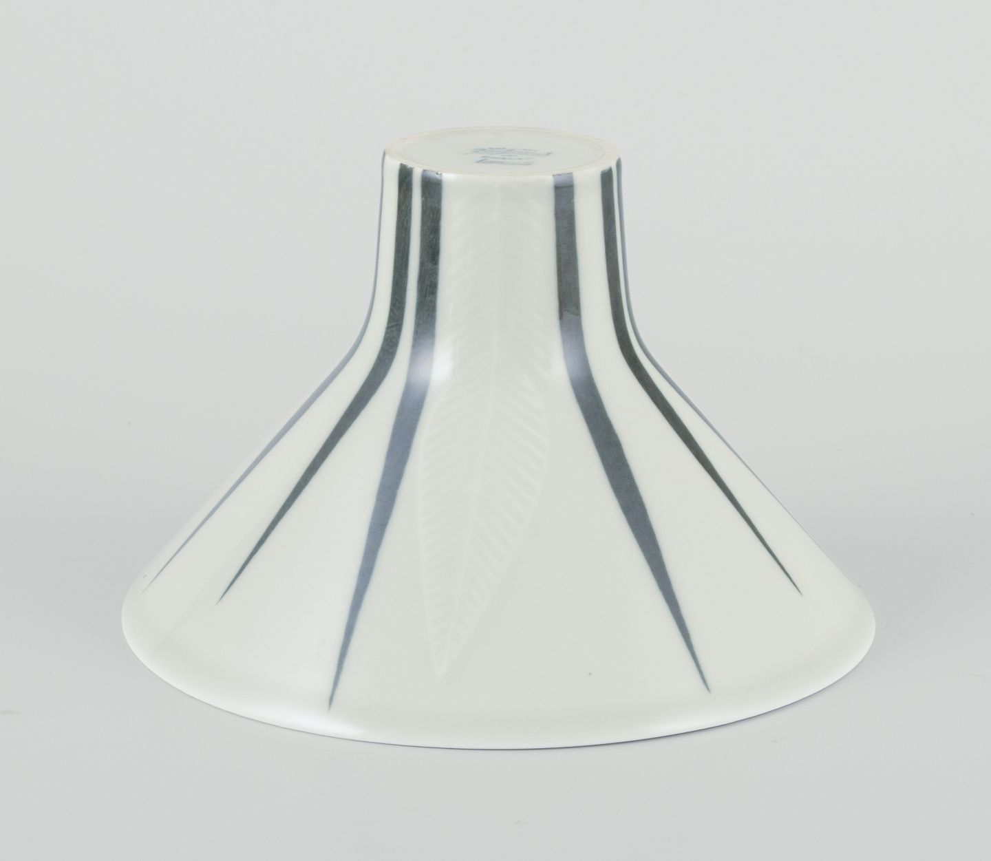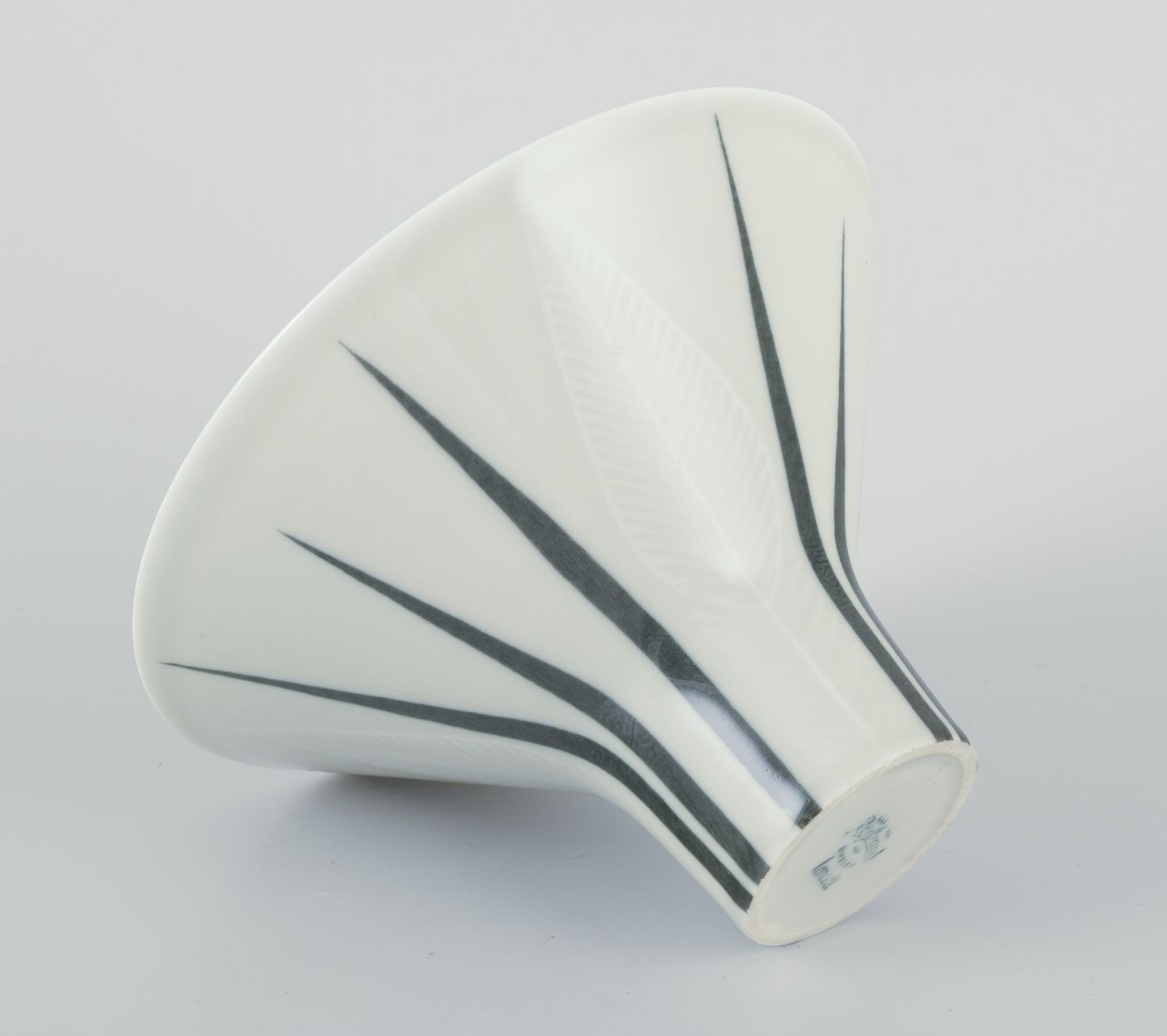Rörstrand ”Lancett” vase af porcelæn. Underglasur. Modernistisk design. Blomstermotiv. Midt 1900-talllet. Stemplet. I flot stand. Mål: D 14,0 cm. x H 9,0 cm.