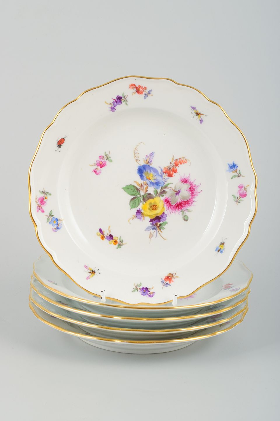 Meissen, et sæt på fem tallerkner i porcelæn.