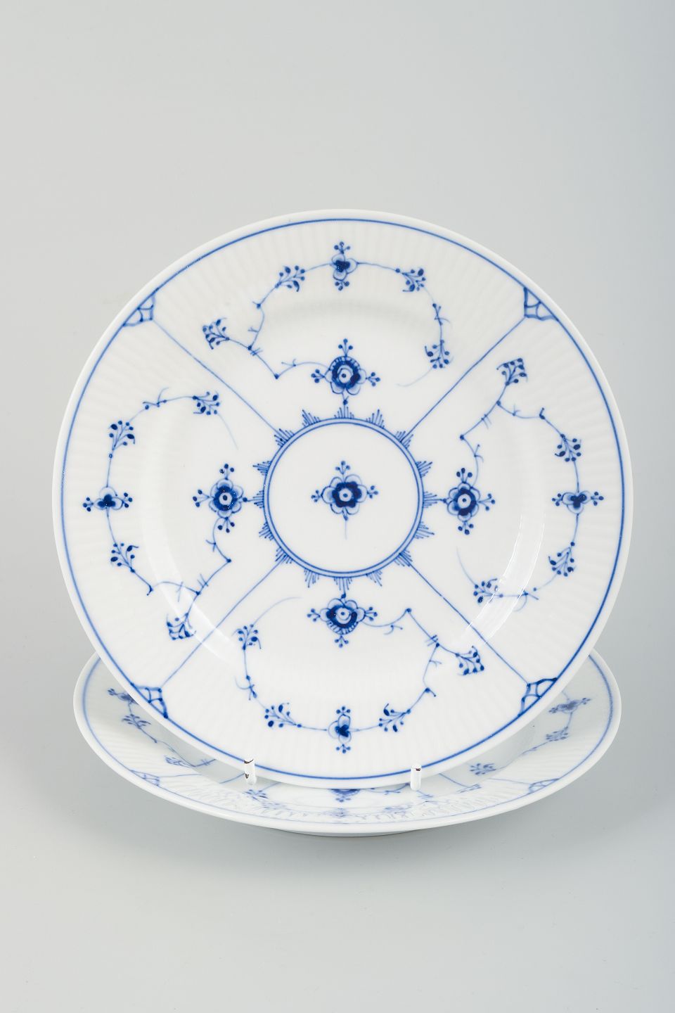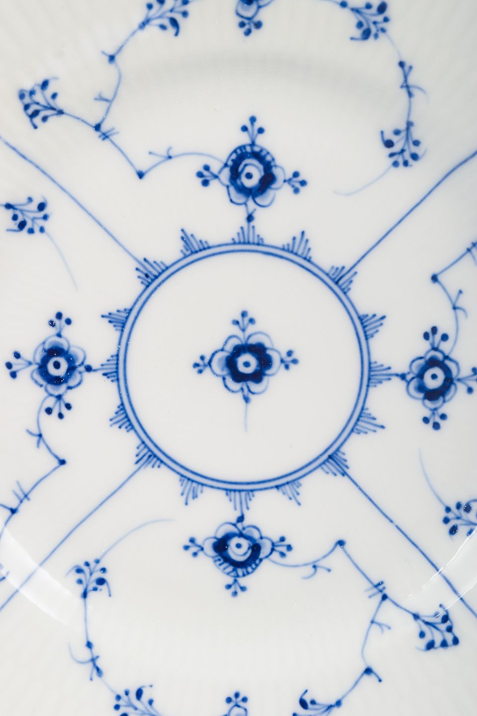 Blue Fluted is a classic porcelain design from Royal Copenhagen, first introduced in 1775. Inspired by Asian porcelain, the pattern is characterized by its blue hand-painted decorations on a white background. It exists in several variations, including Full Lace, Half Lace, and Plain (Fluted). Blue Fluted is an iconic symbol of Danish design tradition and craftsmanship and remains popular and in production to this day.