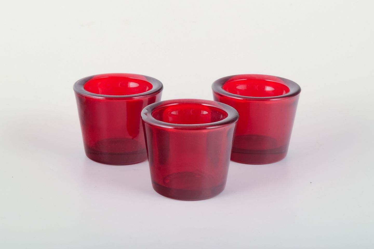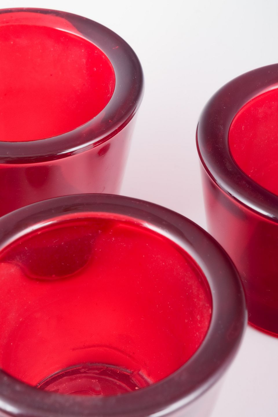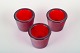 Skandinavisk designer Tre stager til fyrfadslys i rødt glas. Datering: sent 1900-tallet. Mål: Højde ca. 6,5 cm, diameter ca. 8 cm. Kondition: Perfekt stand.
