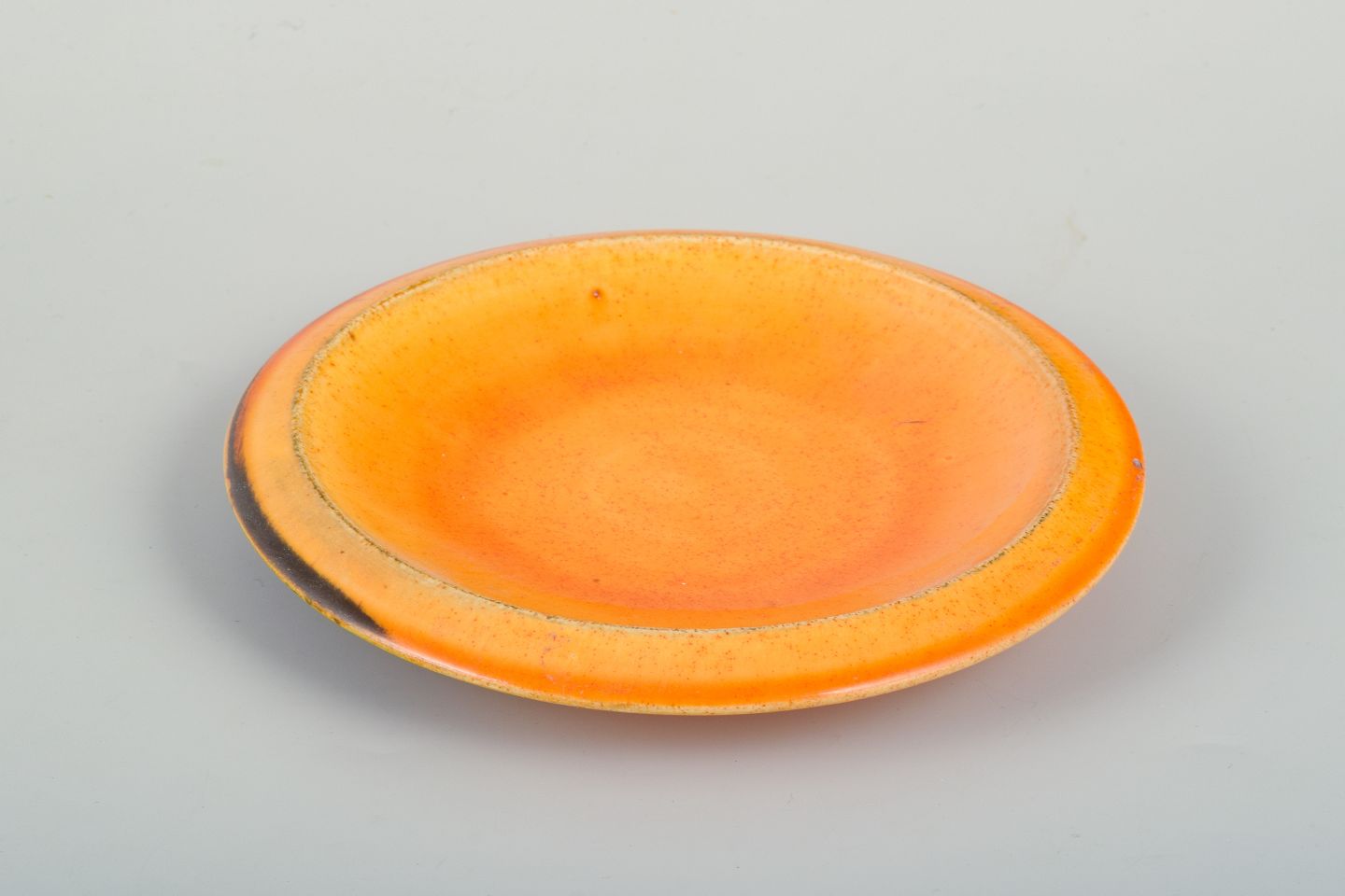 Lille fad designet af Svend Hammershøi for Kähler, udført i 1930’erne. Glaseret i en varm, dyb orange uranglasur med fin farvedybde og lette nuancer i overfladen. En enkel, klassisk form, som fremhæver glasurens intense spil.