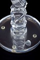 Krystalstage i presset og slebet glas med kobberindsats til lys. Stagens skaft er udformet i et skulpturelt, krystallinsk mønster, der reflekterer lyset smukt.