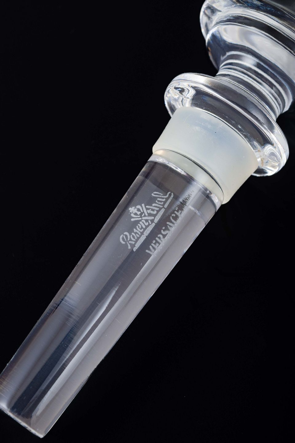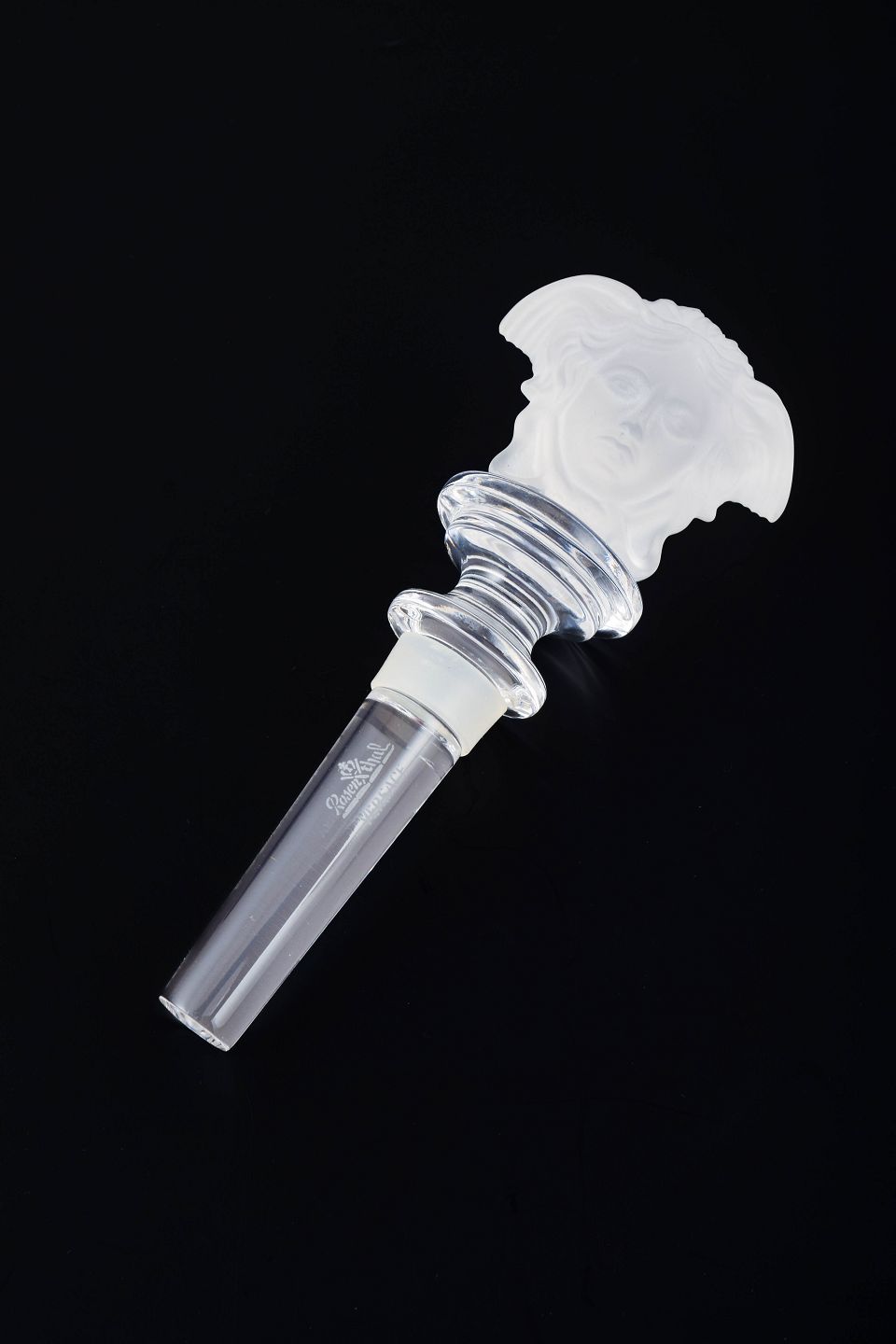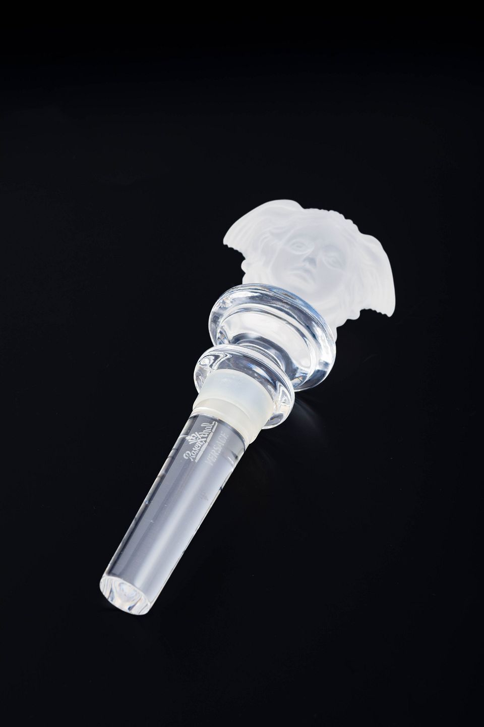 En krystalprop fra Rosenthal produceret i samarbejde med Versace. Proppen er udført i klart og matteret krystal, hvor den øverste del er formet som det ikoniske Medusa-hoved – et gennemgående symbol i Versaces billedunivers. Leveres i original æske dekoreret med Versace-logo og klassisk græsk båndornamentik.