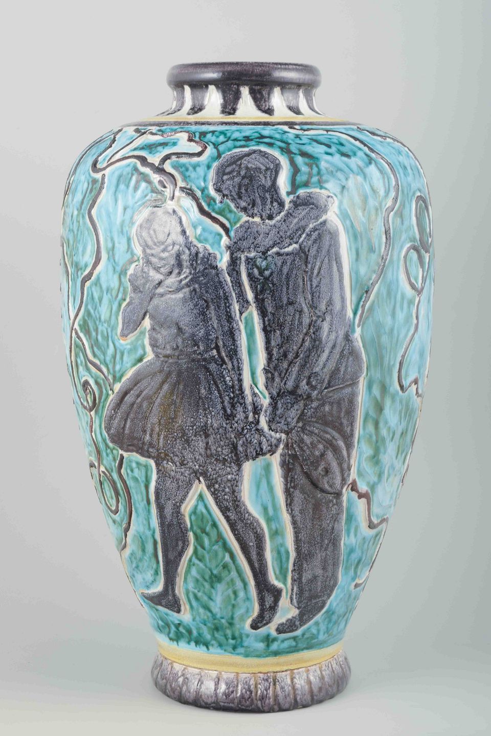 Et imponerende og sjældent eksemplar af Holms ekspressive stentøjsarbejder, udført i et meget lille oplag.