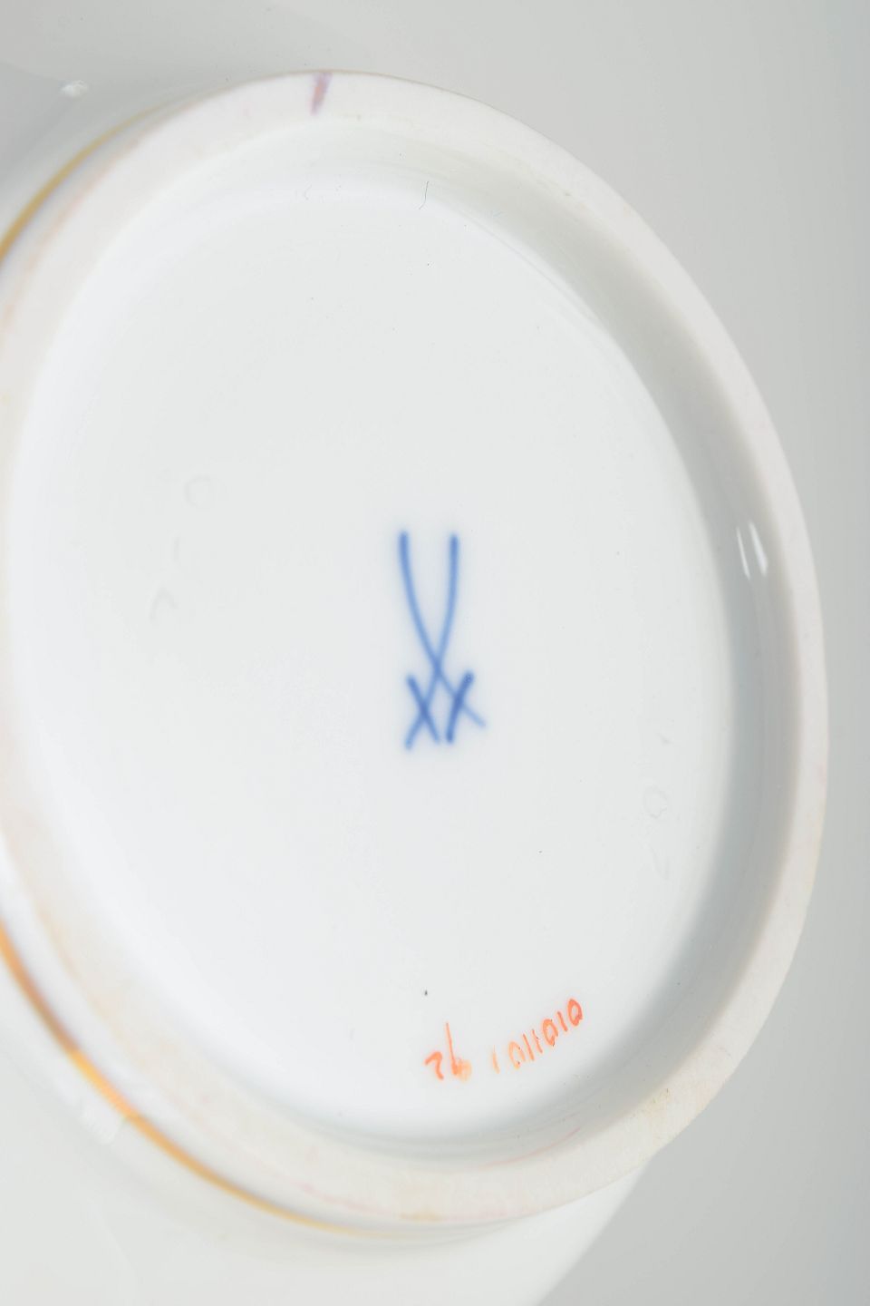 Meissen, grundlagt i 1710, er Europas ældste porcelænsfabrik og kendt for sin høje kvalitet og udsøgte håndværk. Blomsterdekorationerne fra Meissen har siden 1700-tallet været blandt fabrikkens mest populære motiver og findes i mange variationer, ofte kombineret med forgyldte detaljer. Midt-1900-tallets Meissen-stykker udmærker sig ved klassisk elegance og samlerinteresse.
