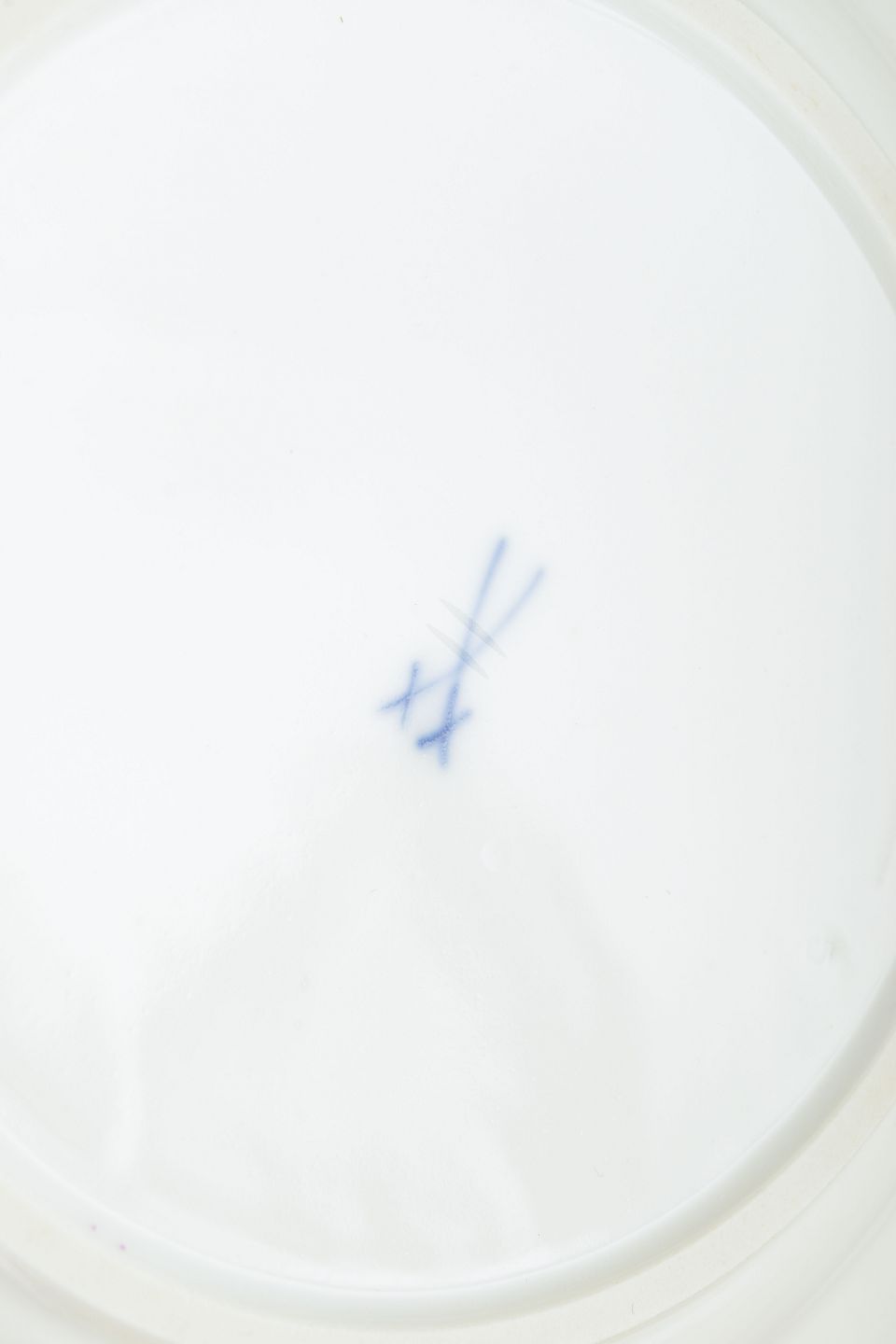 Meissen har siden 1710 været en af Europas førende porcelænsfabrikker, kendt for håndmalede dekorationer og udsøgt kvalitet. I det tidlige 20. århundrede eksperimenterede fabrikken med variationer af de klassiske blomster- og frugtmotiver, ofte i klare farver som lilla, grøn og pink, hvilket gør stykkerne både dekorative og samlerværdige i dag.