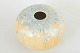 Drejet stentøjsvase med krystalglasur i lyseblå og beige nuancer. Dekorationen danner et organisk, næsten floralt mønster omkring skulderen. Signeret i monogram i bunden.
