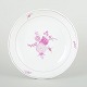 Håndmalet rund skål i porcelæn med dekor i lilla blomsterkompositioner og let bølget kant. Klassisk Meissen-design med elegant staffering i rosa toner.