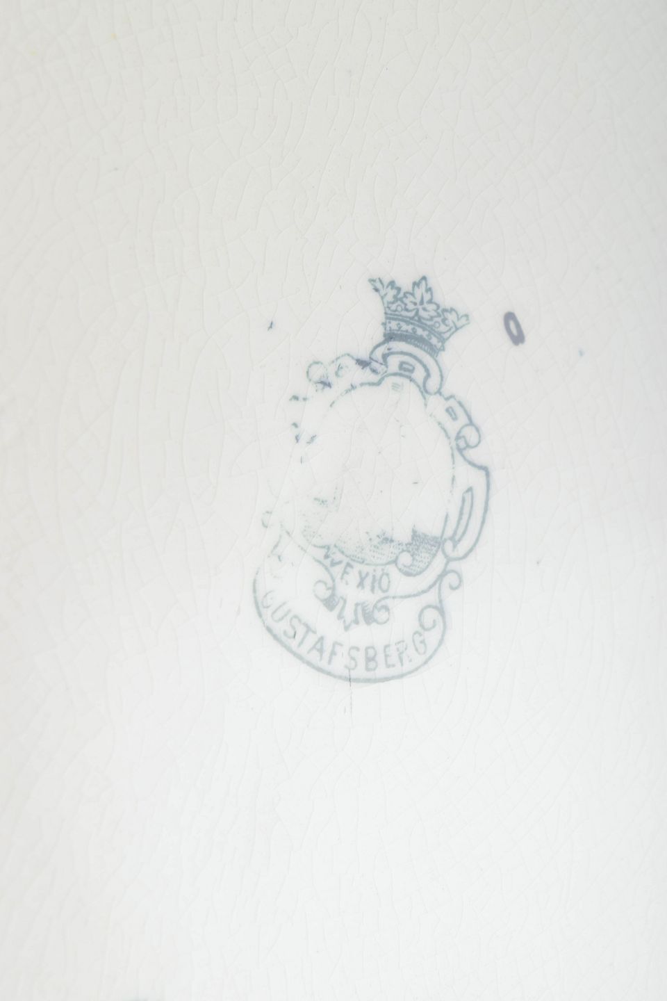 Gustavsberg, grundlagt i 1825 nær Stockholm, var en af Sveriges førende porcelæns- og fajancefabrikker gennem 1800- og 1900-tallet. Serien “Wexiö” blev produceret omkring år 1900 og afspejler tidens interesse for naturmotiver og dekorative overførselstryk i afdæmpede farver.