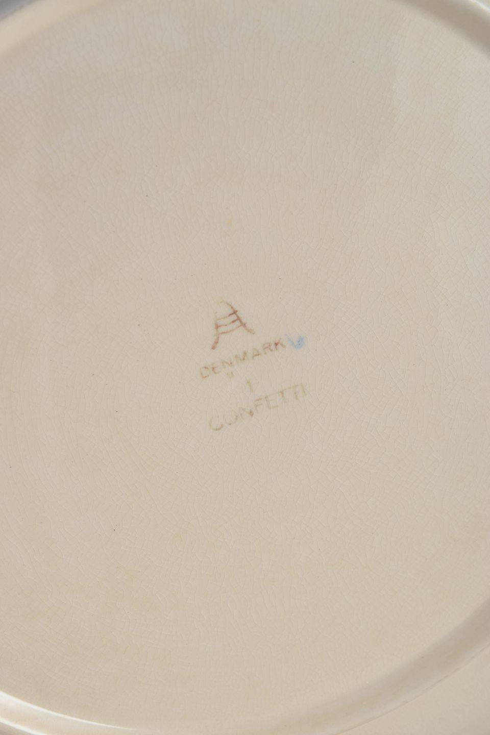Aluminia blev grundlagt i 1863 og blev i 1882 en del af Royal Copenhagen. I midten af det 20. århundrede lancerede fabrikken en række farverige serier som “Confetti”, der kombinerede funktionel formgivning med livlige farvetoner. Serien blev et symbol på dansk efterkrigsmodernisme og er i dag eftertragtet blandt samlere for sit lyse og tidløse udtryk.