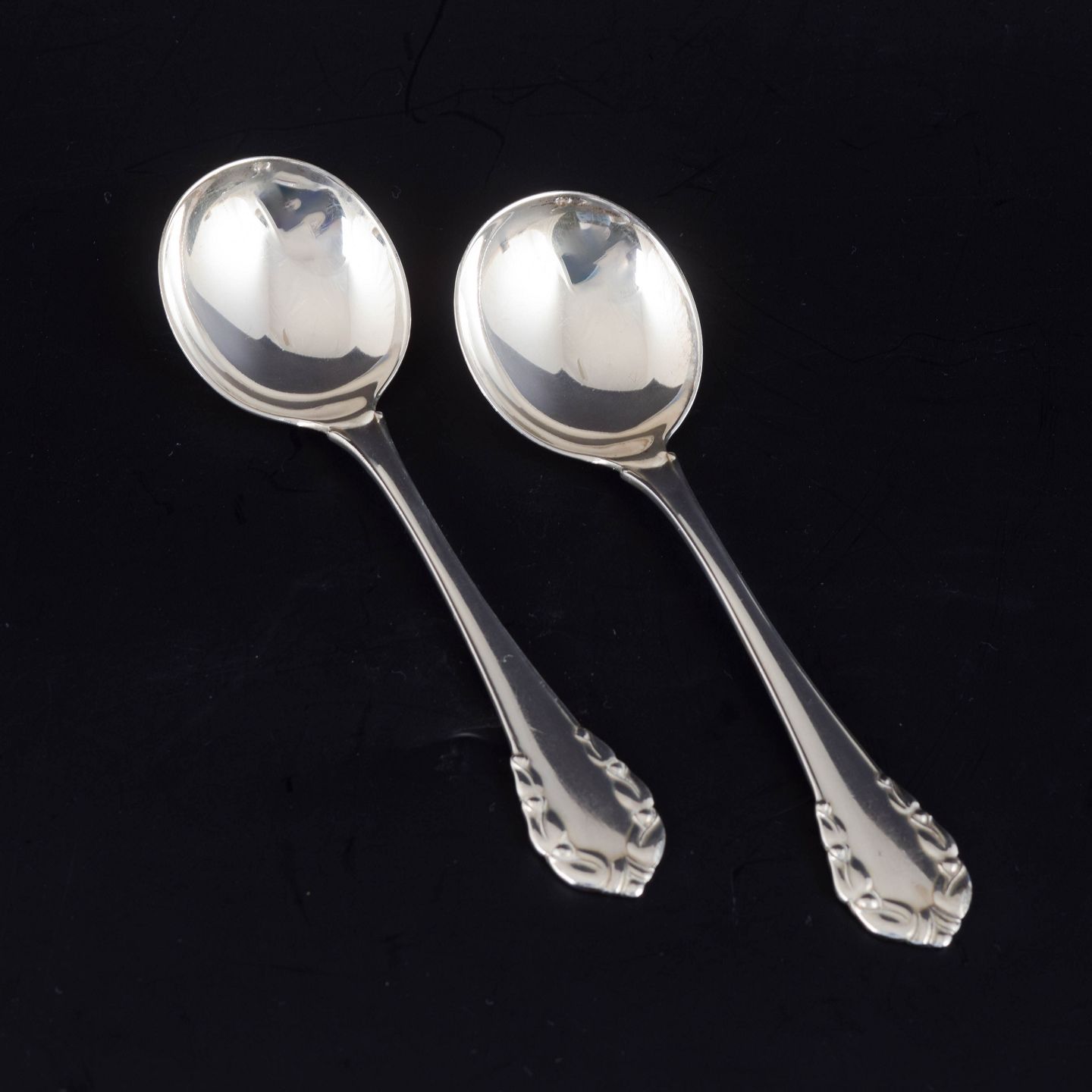 To marmeladeskeer i sterlingsølv fra Georg Jensen i det klassiske “Liljekonval”-mønster. Elegant udført med afrundede linjer og blomsterornamentik i art deco-stil. Stemplet “GEORG JENSEN STERLING DENMARK”.