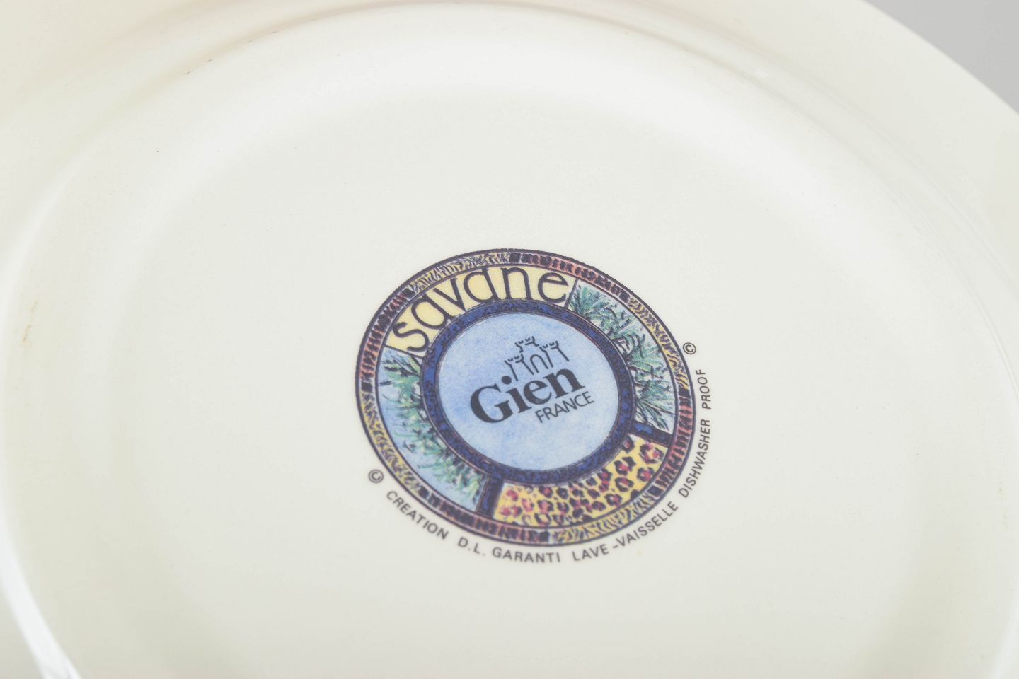 Gien, grundlagt i 1821, er kendt for sine kunstnerisk udsmykkede fajanceserier. “Savane”-kollektionen fra 1980’erne er særlig værdsat for sine levende farver og naturinspirerede motiver, som fortsat gør serien eftertragtet blandt samlere af fransk dekorativ keramik.