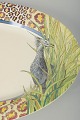 Dekorativt ovalt fajancefad fra Gien i det karakteristiske “Savane”-mønster med farverig bort og naturalistisk motiv. Et markant stykke fra seriens livlige og kunstneriske udtryk.