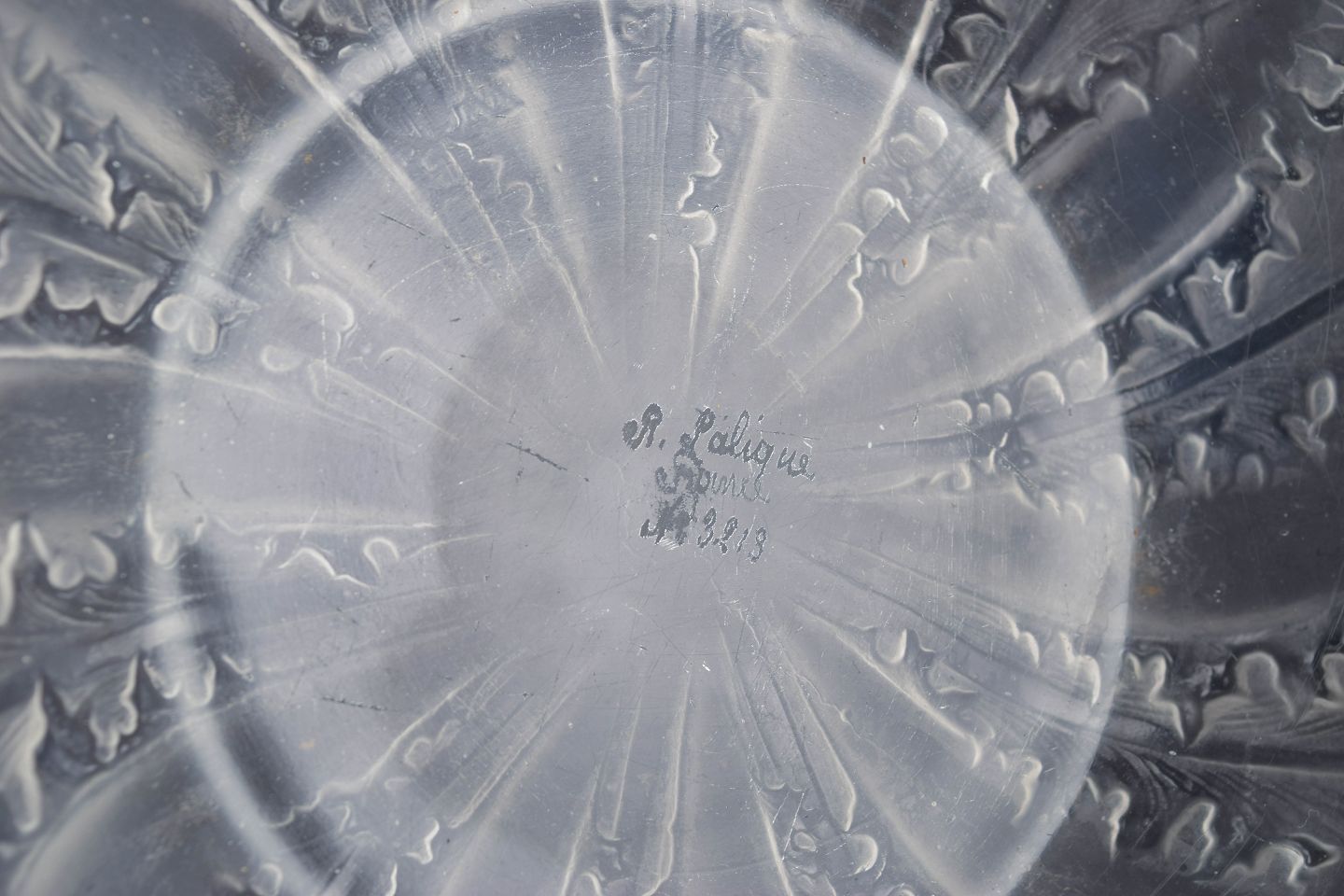 René Lalique (1860–1945) var en af Art Deco-periodens mest betydningsfulde glaskunstnere. Hans design kombinerede naturinspirerede motiver – især fjer, blade og dyr – med teknisk avancerede glasmetoder. De tidlige modeller fra 1920’erne og 30’erne, herunder nr. 3229, er højt værdsatte for deres raffinerede proportioner og subtile spil mellem frosted og polerede flader.