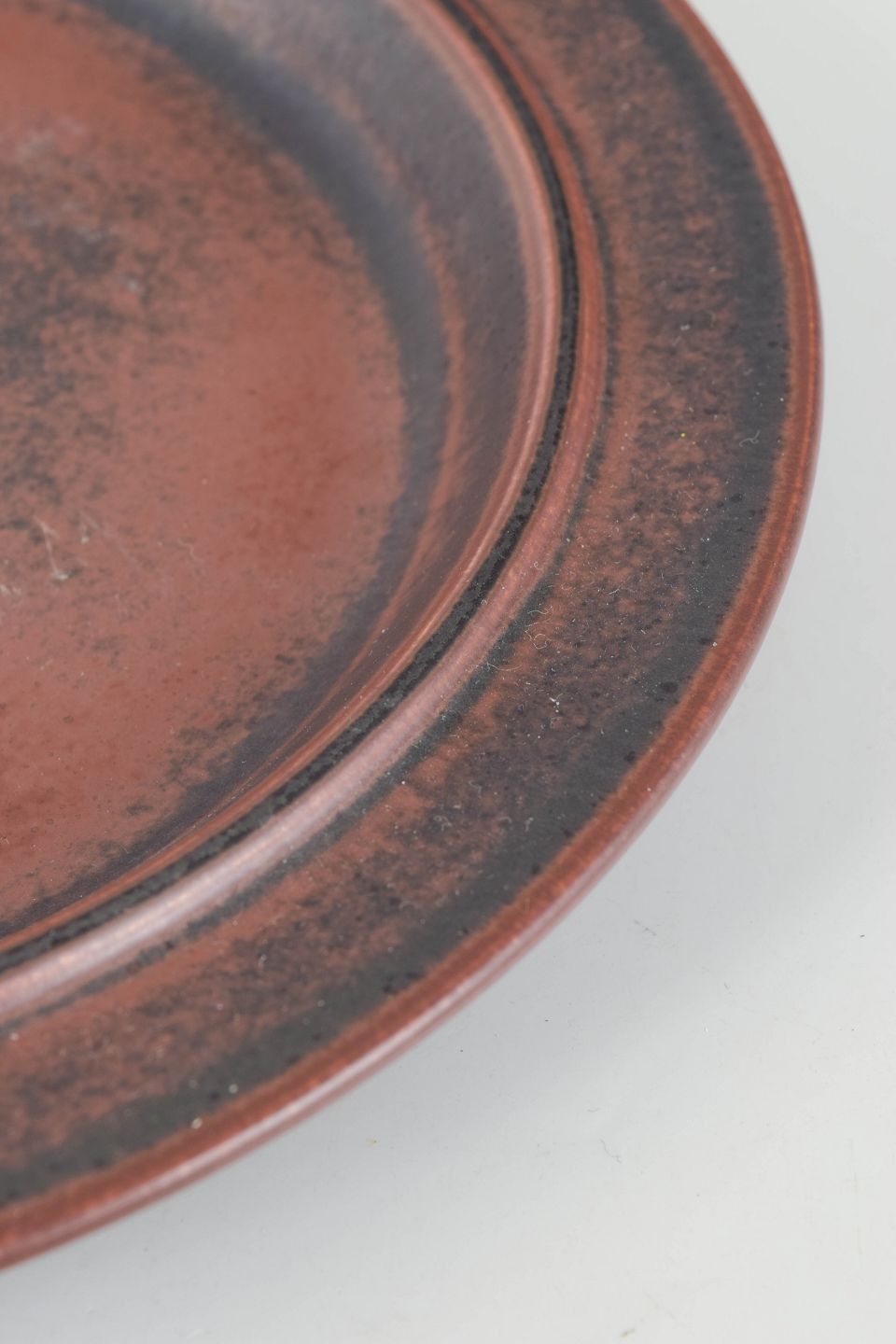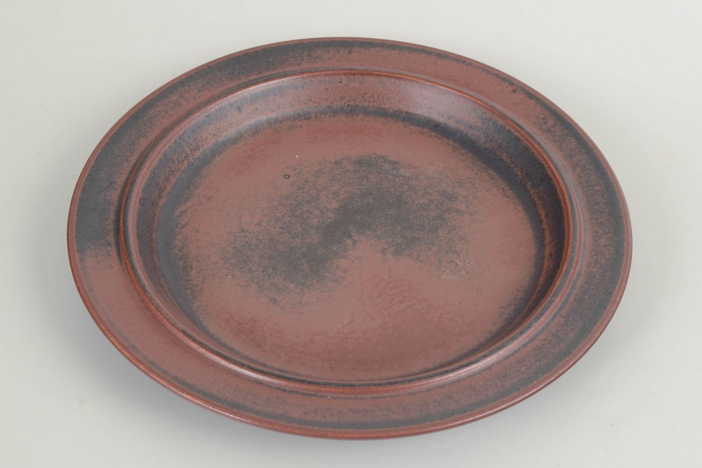 Fad i stentøj fra Arabia udført i Ruska-serien med karakteristisk, meleret brun glasur i varme jordtoner. Klassisk cirkulær form med let forhøjet fane og levende glasuroverflade, hvor farvespillet varierer naturligt fra stykke til stykke. Model fra Ruska-serien.