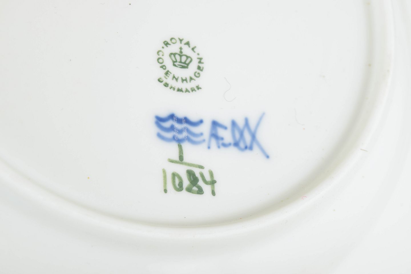 Musselmalet helblonde er blandt de mest raffinerede varianter af Royal Copenhagens klassiske musselmalede stel og er kendt for den detaljerede, gennembrudte blondekant, som kræver et højt håndværksmæssigt niveau.