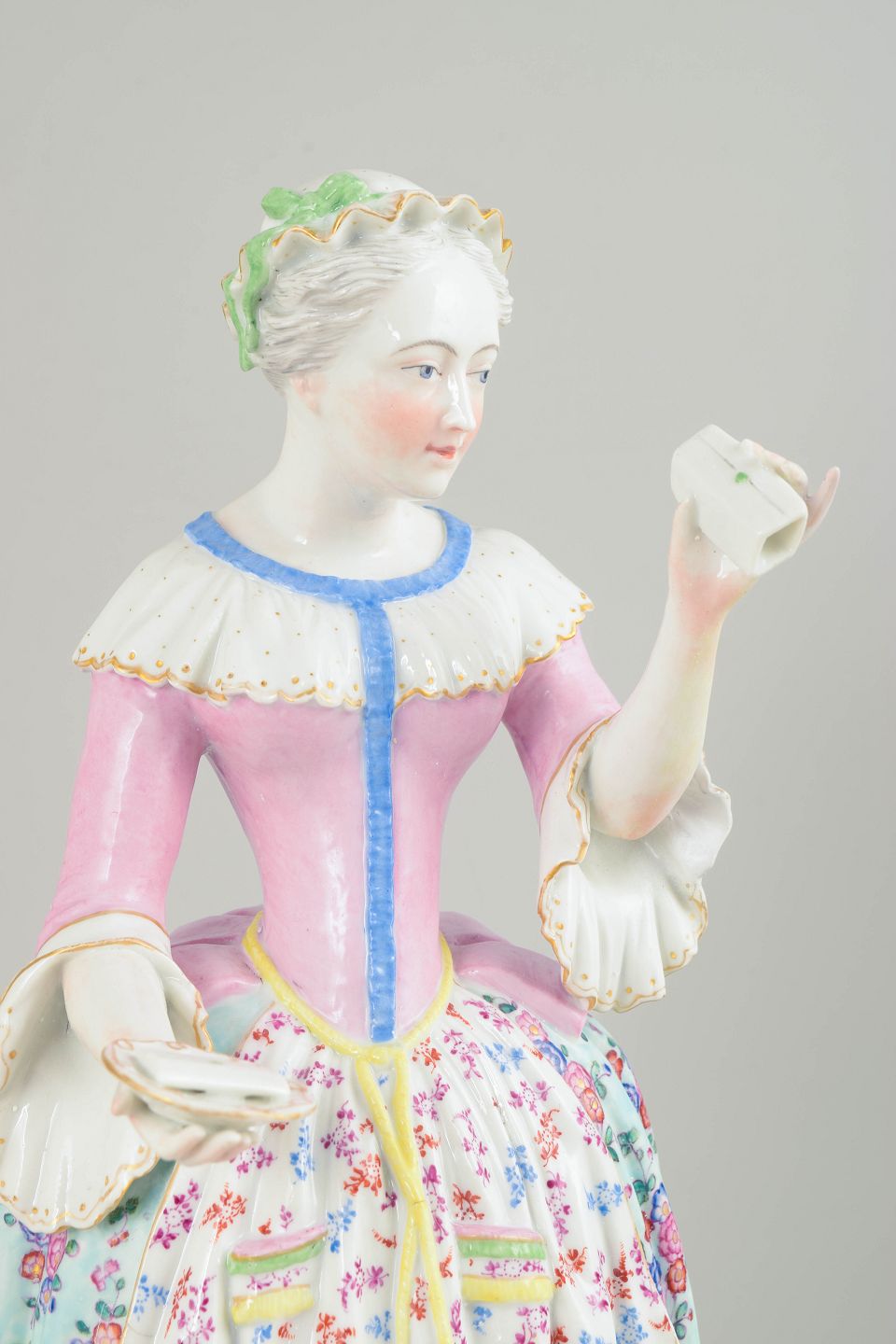 Meissen var Europas første hårdporcelænsfabrik, grundlagt i 1710, og opnåede i 1700-tallet international anerkendelse for sine figurer af enestående kunstnerisk og teknisk kvalitet. Perioden med Marcolini-mærket er kendetegnet ved forfinet modellering, høj brændingskvalitet og udsøgt håndmalet dekoration. Motivet “La Belle Chocolatière”, kendt fra Liotards akvarel, blev et ikon for oplysningstidens idealer om elegance og hverdagsliv og hører til blandt Meissens mest eftertragtede figurmodeller.