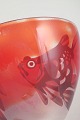 Skål i klart og rødtonet kunstglas med indsmeltede fiskemotiver og matteret bund, signeret Hoff.