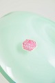 Low bowl in hand-blown opaline and green glass with an organic, asymmetrical form and polished surface; retaining original Vetro Artistico Murano label.