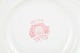 Middagstallerkener i fajance fra engelske producenter, dekoreret i rød transferware med landskabs- og ornamentmotiver.