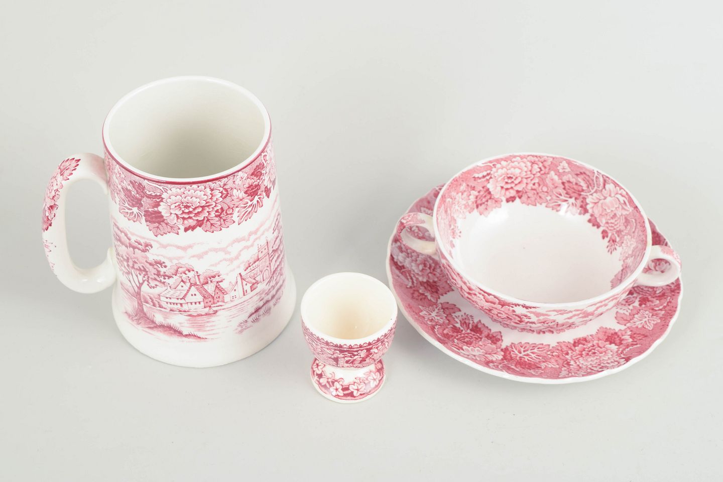 Mason’s, Wood & Sons, sæt med ølkrus, bouillonkop med underkop og æggebæger.