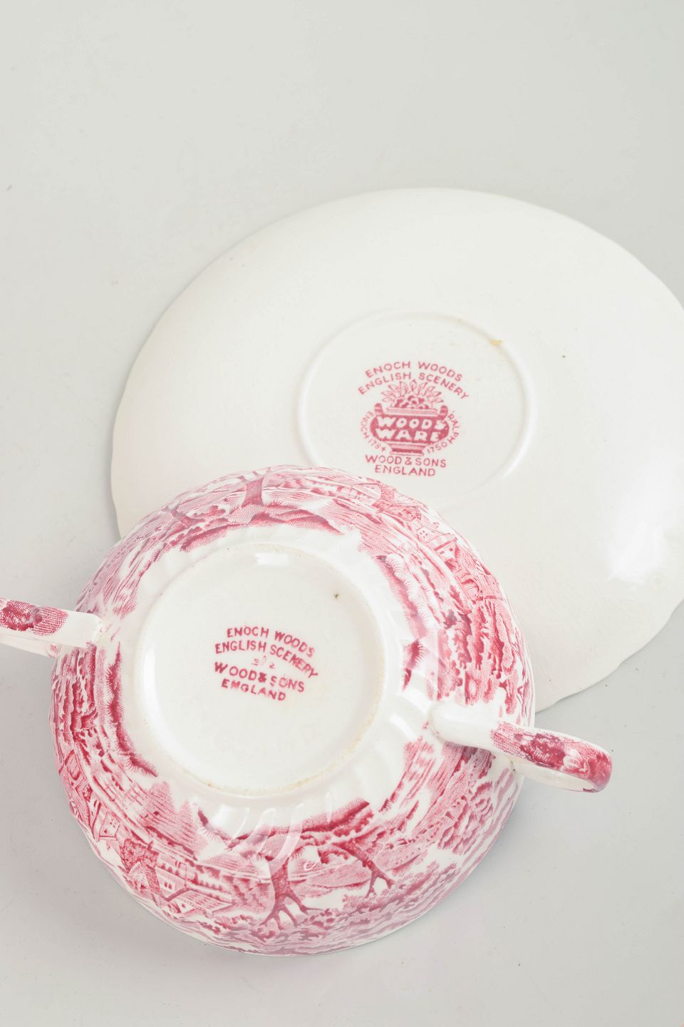 Wood & Sons blev grundlagt i Staffordshire i 1865 og udviklede sig til en betydelig producent af engelsk fajance og servicevarer. Fabrikken er især kendt for sine dekorative transferware-mønstre, ofte med historiske og pastorale motiver. Produktionen omfattede både hverdagsbrug og mere dekorative genstande, som blev eksporteret bredt. Samarbejder og parallel produktion for blandt andet Mason’s var almindelige i perioden.