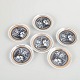 Sæt på seks runde flaskebakker i porcelæn med sort og hvid grafisk dekoration samt gulddetaljer. Fremstillet i begrænset udgave.