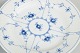 Sæt på 4 middagstallerkener i hvidt porcelæn med håndmalet koboltblå musselmalet riflet dekoration. Model 1/175.