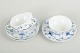 Royal Copenhagen Musselmalet Riflet, sæt af tre tekopper med tilhørende underkopper.
