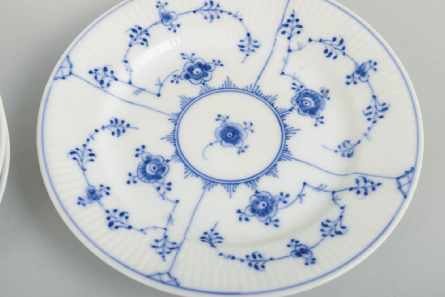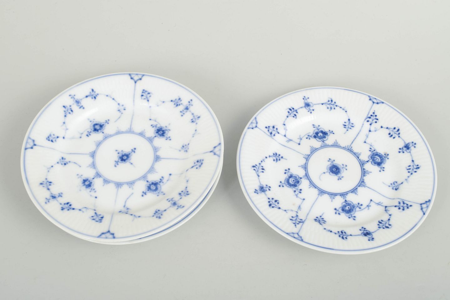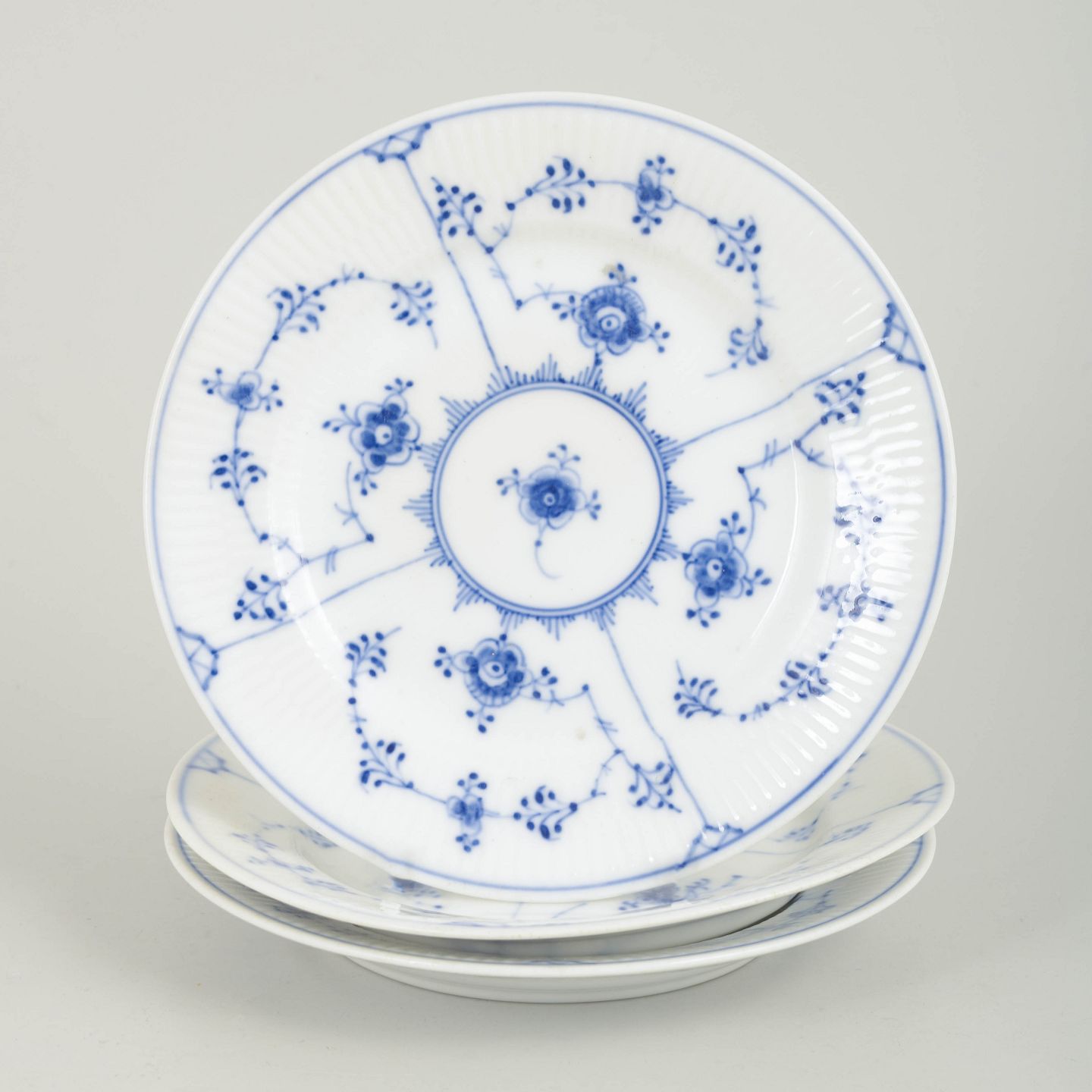 Royal Copenhagen Musselmalet Riflet, sæt af tre kagetallerkener.