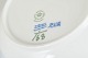 Sæt af tre håndmalede porcelænstallerkener dekoreret med det klassiske musselmalede riflet mønster i blå underglasur. Tallerkenerne har bred fane med riflede detaljer og centralt blomsterornament omgivet af slyngede blomstergrene. Undersiden er fabriksstemplet Royal Copenhagen. To tallerkener i første sortering og én annulleret med én indridset streg gennem fabriksstemplet. Model 1/168.