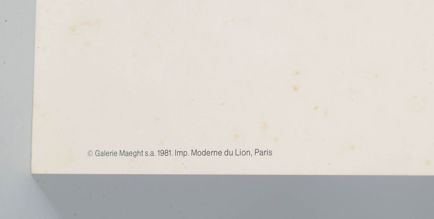 Farverig plakat udgivet i forbindelse med udstillingen “Lithographies originales récentes” hos Galerie Maeght i Paris, 20. maj – 10. juli 1981. Motivet viser en karakteristisk poetisk og drømmende scene med svævende figurer og arkitektur, udført i Chagalls let genkendelige stil med bløde farver og lyrisk streg.