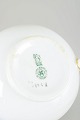 Dekorativt sæt i porcelæn bestående af flødekande og sukkerskål med farverig blomsterdekoration i Temple mønster og karakteristisk grøn bort.