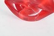 Skulpturel form som læber udført i massivt rødt glas med bløde organiske linjer og transparent effekt.