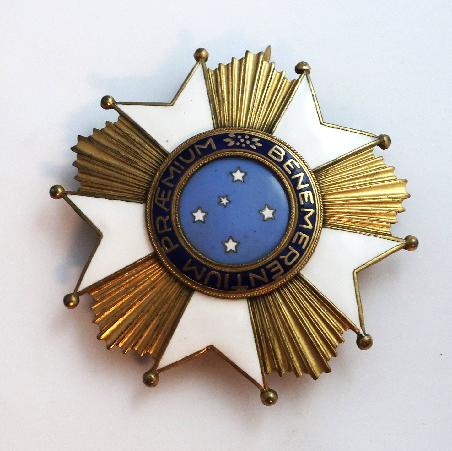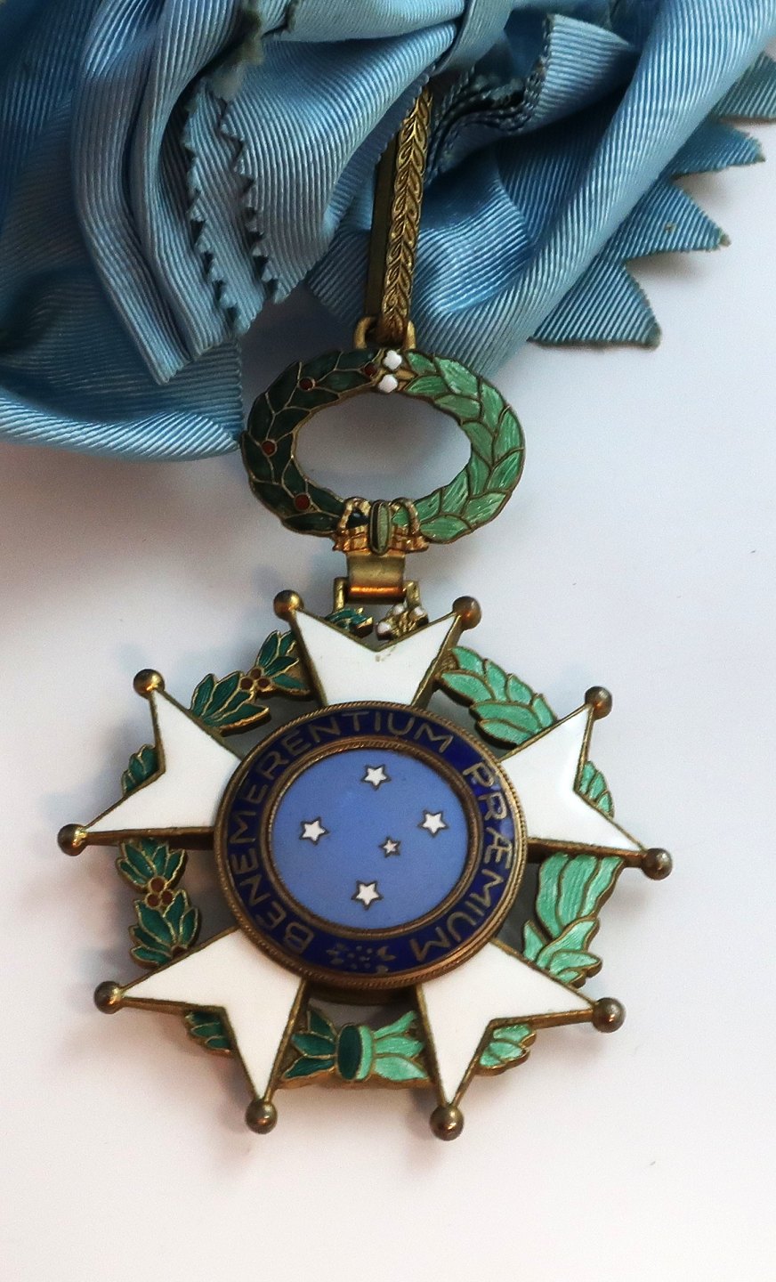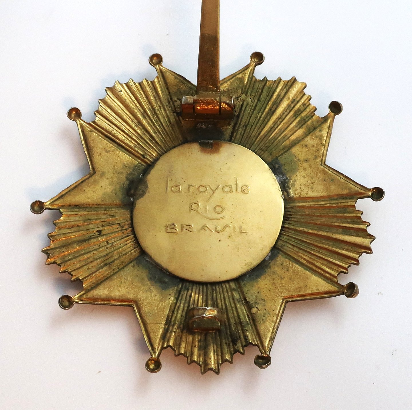 Brasilien. Storkorssæt, AR - forgyldt og emaljeret, Orden på originalt skærf, bryststjerne stemplet og producentplade H. Stern, på nål, i original etui. Etui lettere beskadiget.