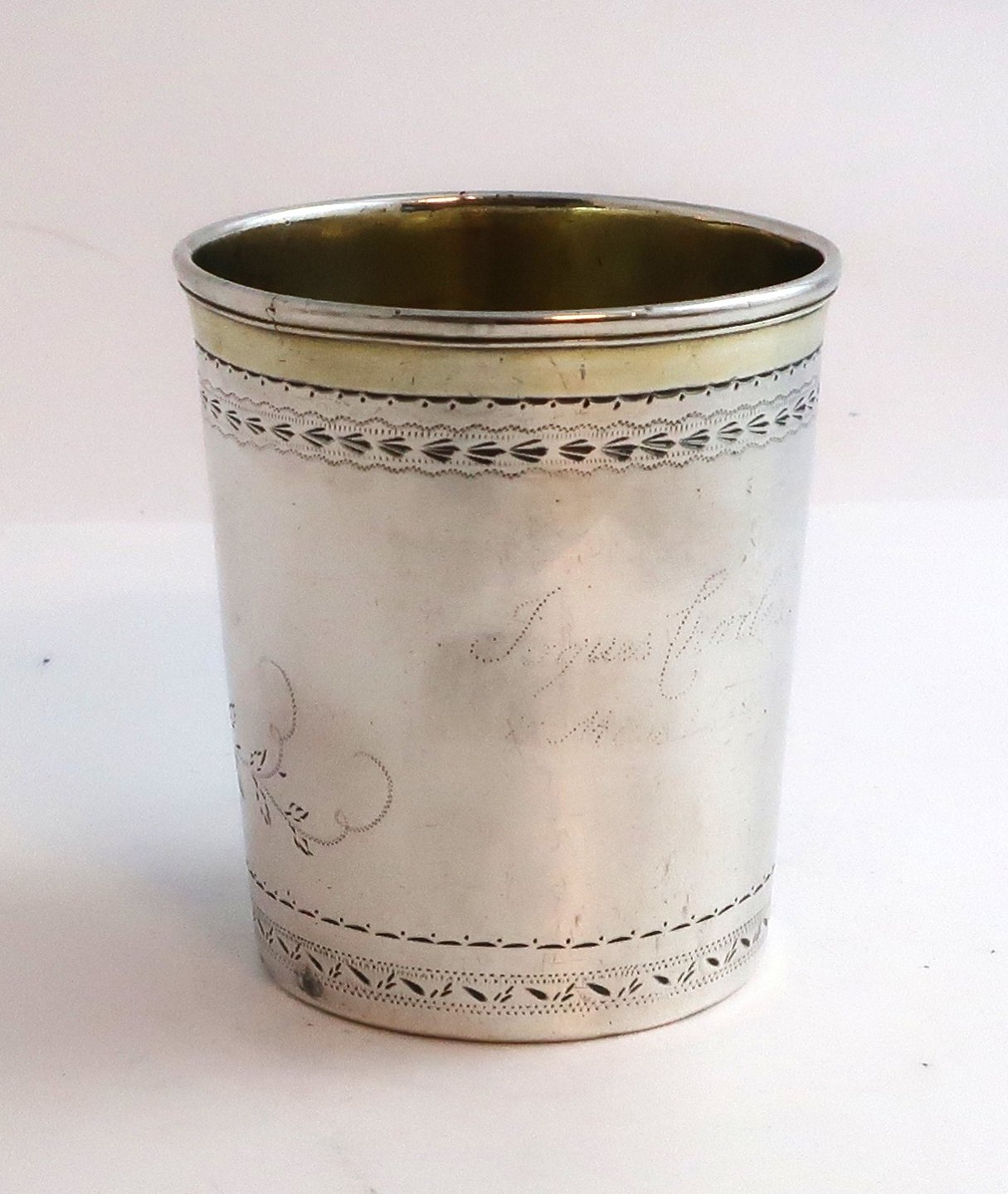 Lorenz Christophersen Linde, geboren in Bergen. Kopenhagen nach 1786 und gestorben 1809. Silberpokal mit Vergoldung. Höhe 7,6 cm. Durchmesser 7 cm.
