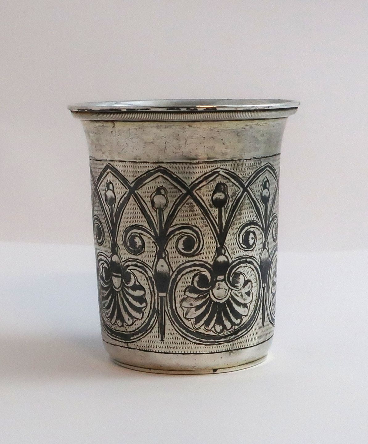 Rusland. Lille sølv bæger med niello (84). Højde 6 cm. Diameter 5,1 cm. Produceret 1837