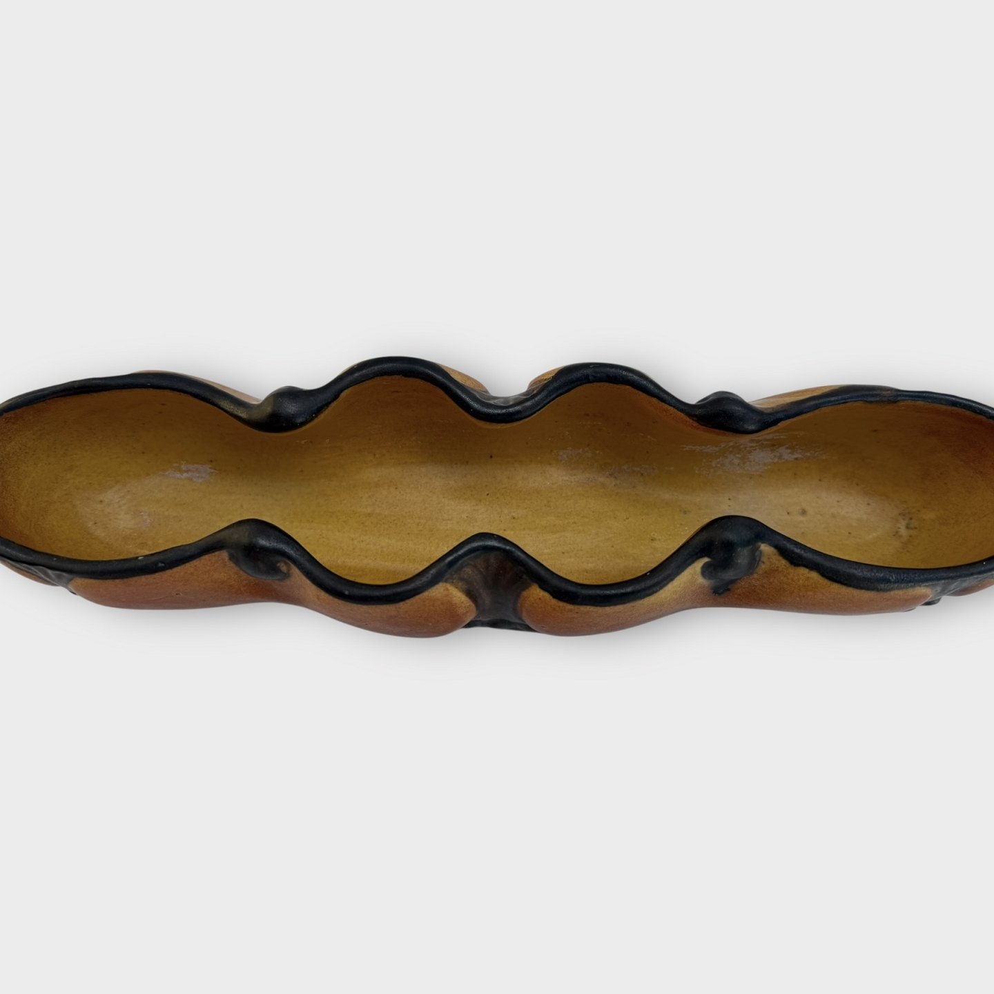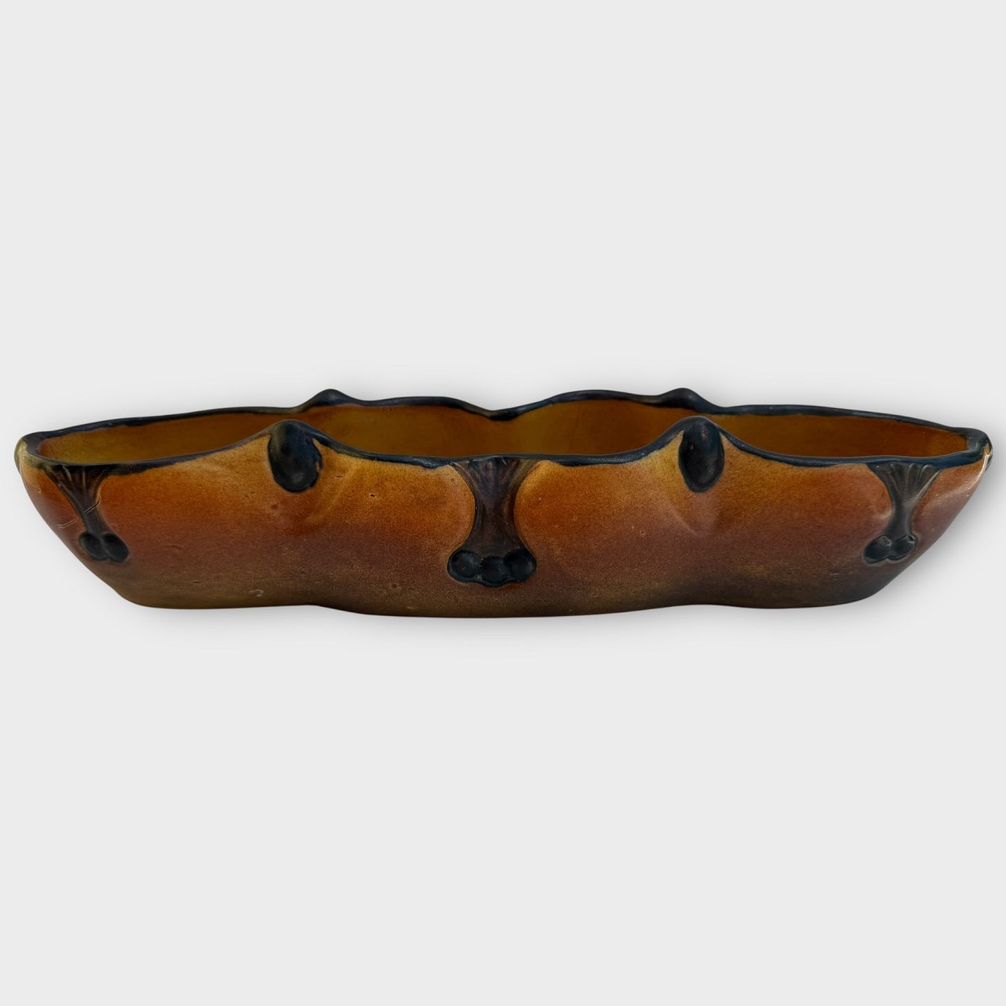 P. Ipsen Copenhagen, later P. Ipsen's Widow, Art Nouveau, Oblong bowl, 35 cm long, A few very small cracks, otherwise in good condition.