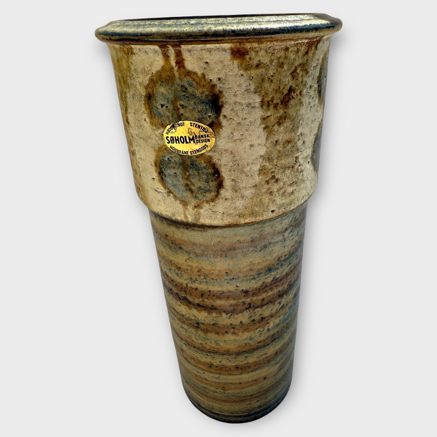 Bornholm ceramics, Søholm, Vase with retro pattern #3602/3, 22cm high, 10cm in diameter *With small chip under the bottom (see photo) otherwise in good condition*