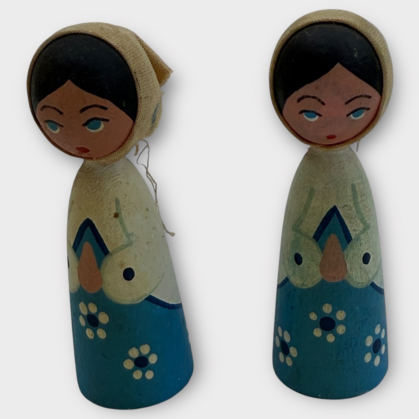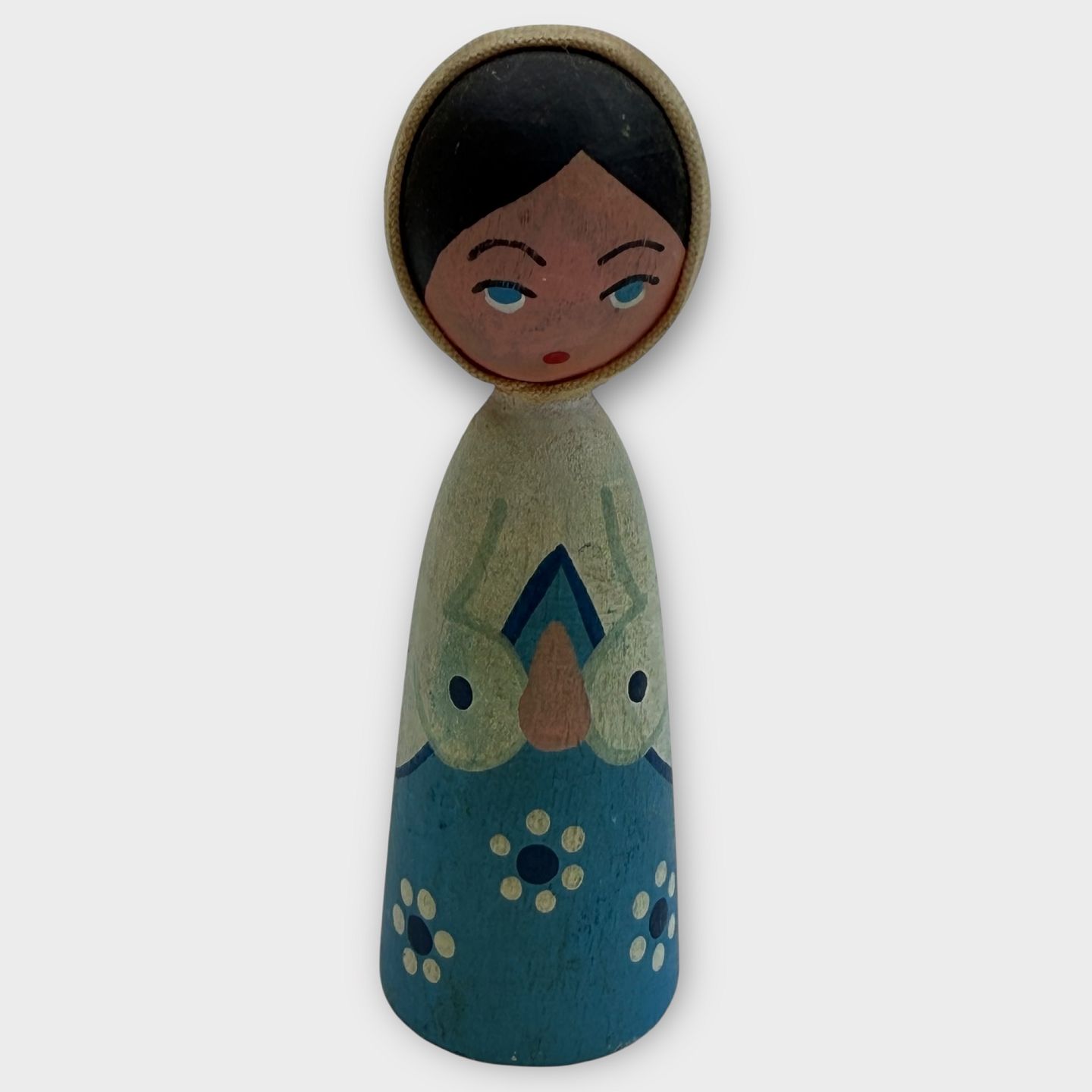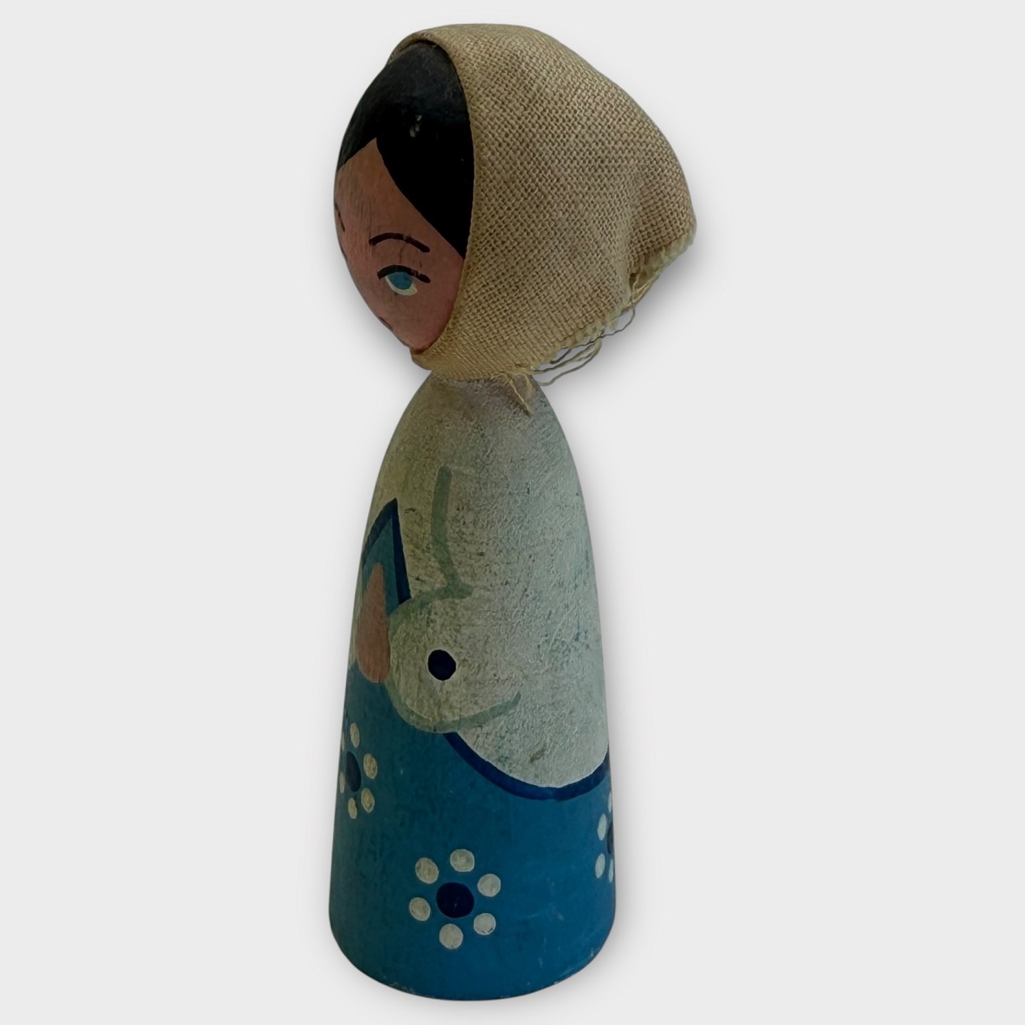 Eigenbrod Bogense, wooden female figure in blue, shepherdess, Christmas decoration, 8cm high, *good condition*