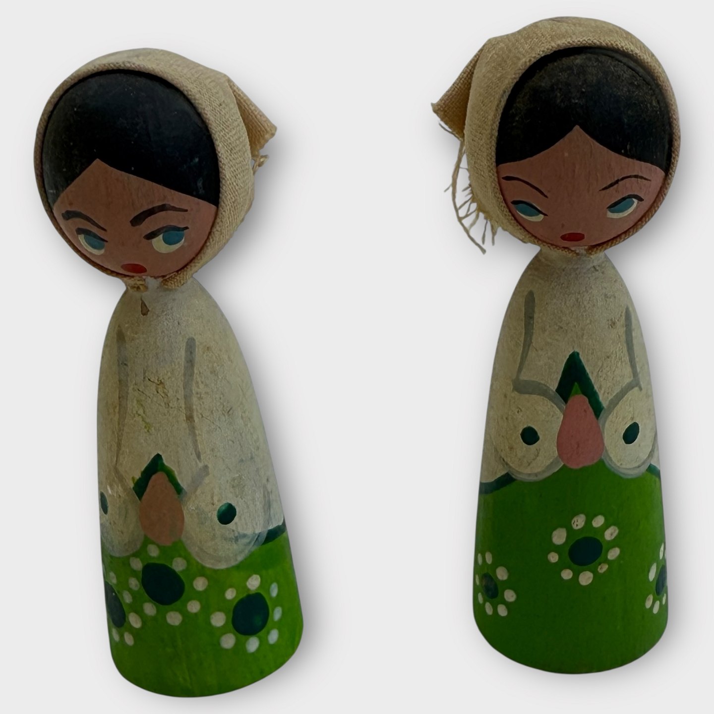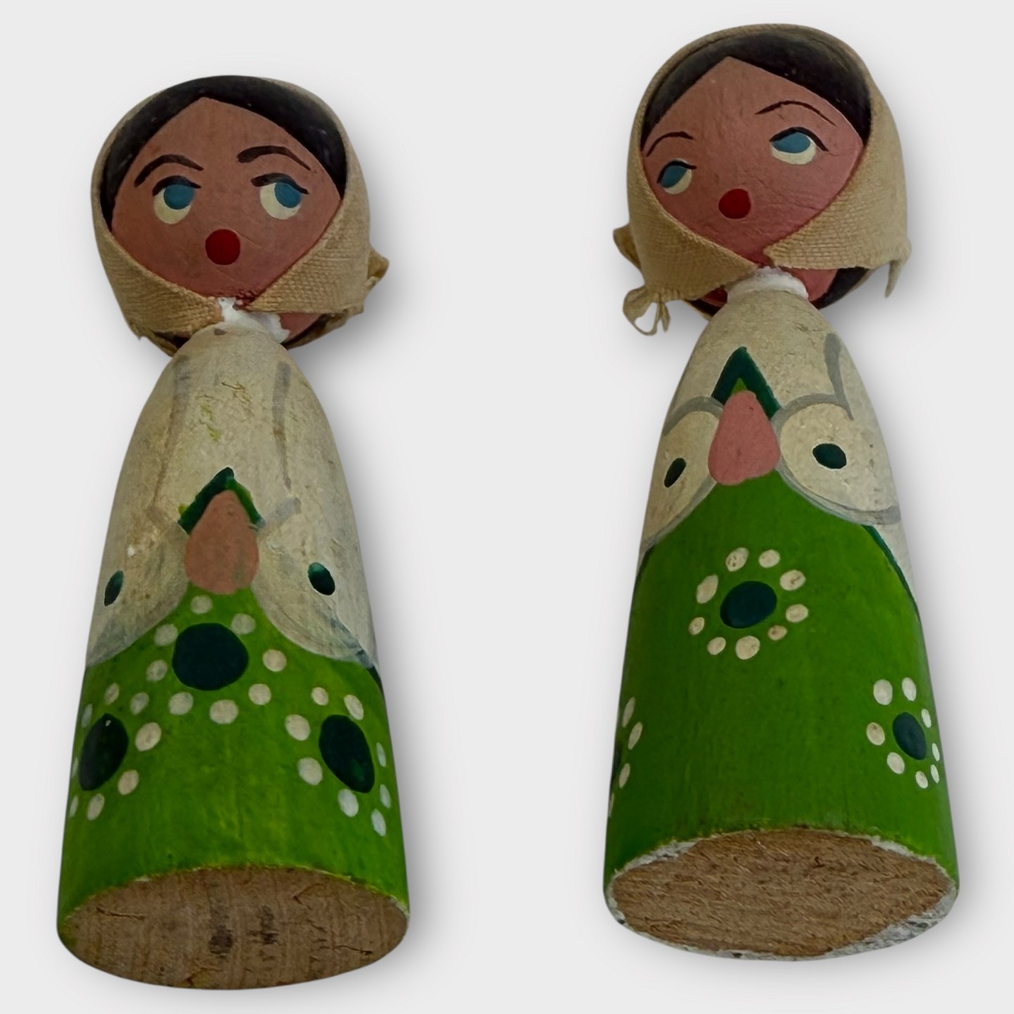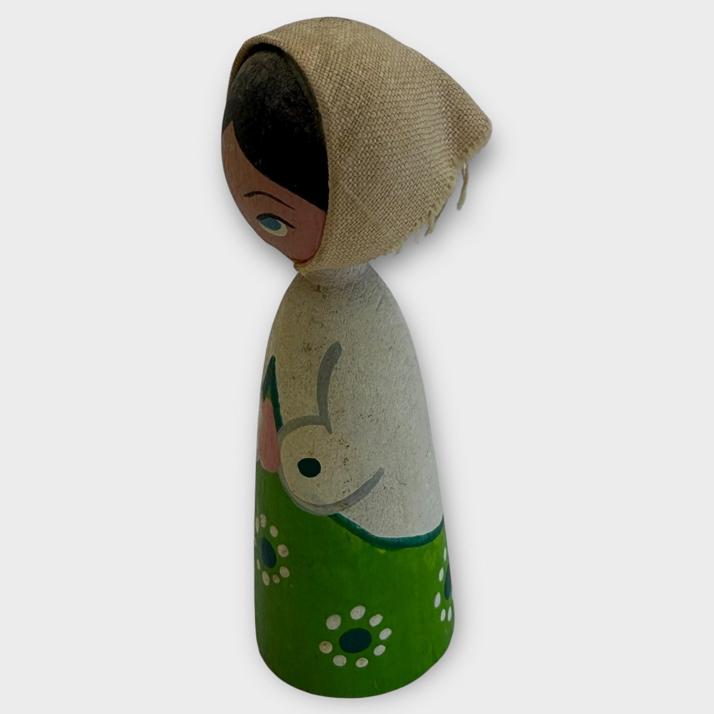 Eigenbrod Bogense, wooden female figure in green, shepherdess, Christmas decoration, 8cm high, *nice condition*