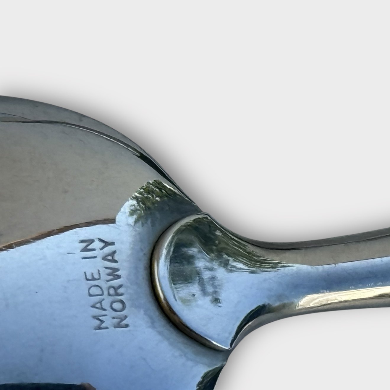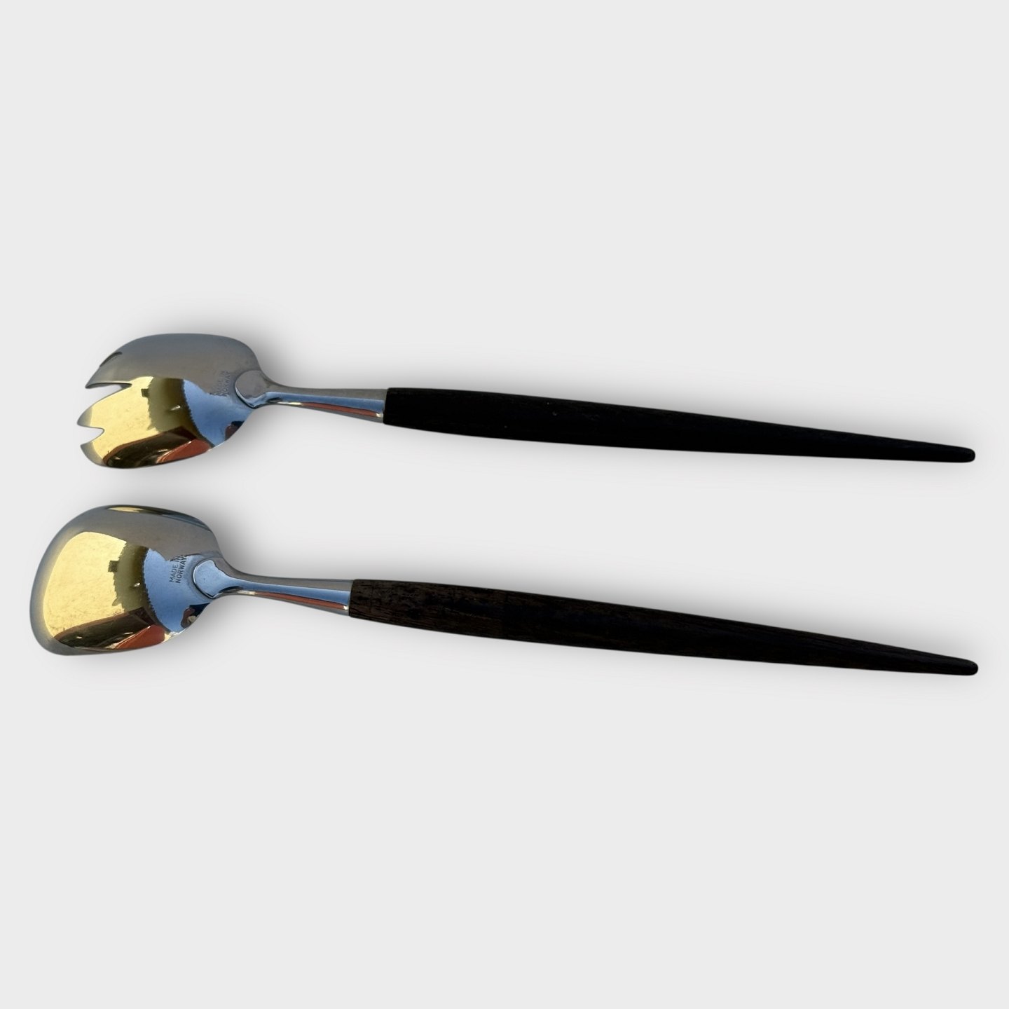 Made in Norway, Salad cutlery in teak wood and steel, good used condition, 23 cm long