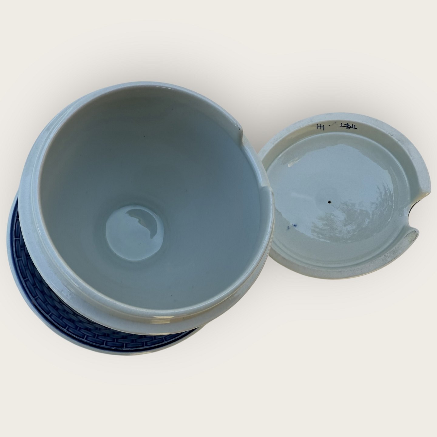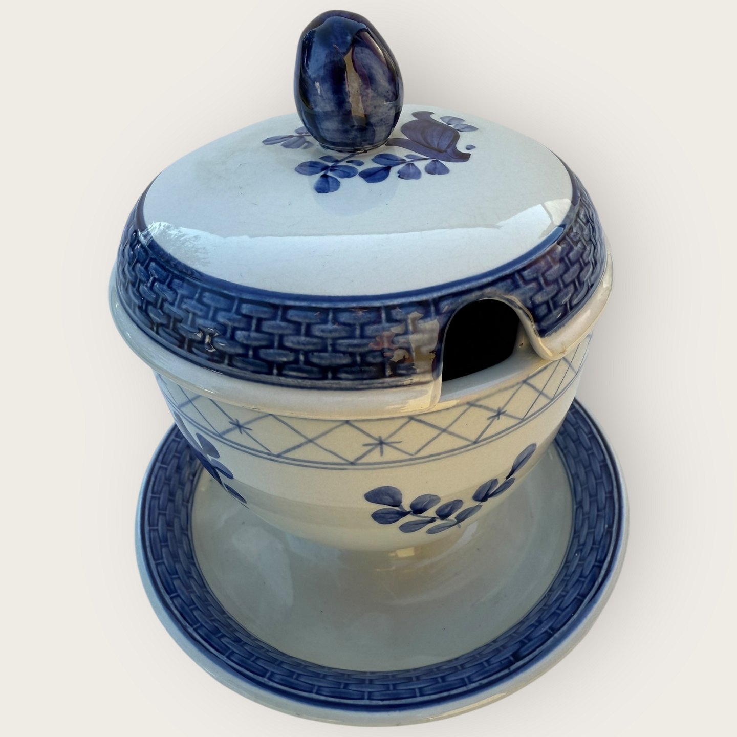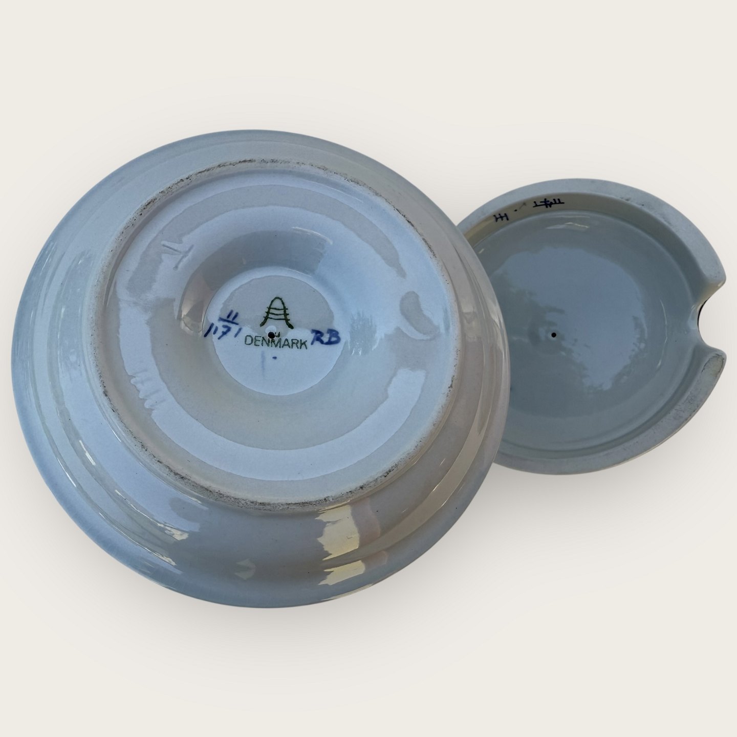 Royal Copenhagen, Tranquebar, Jam jar #11/1171, Height 14 cm, 13 cm in diameter, 1st grade, Design Christian Joachim *With some cracks under the glaze, otherwise in good condition*