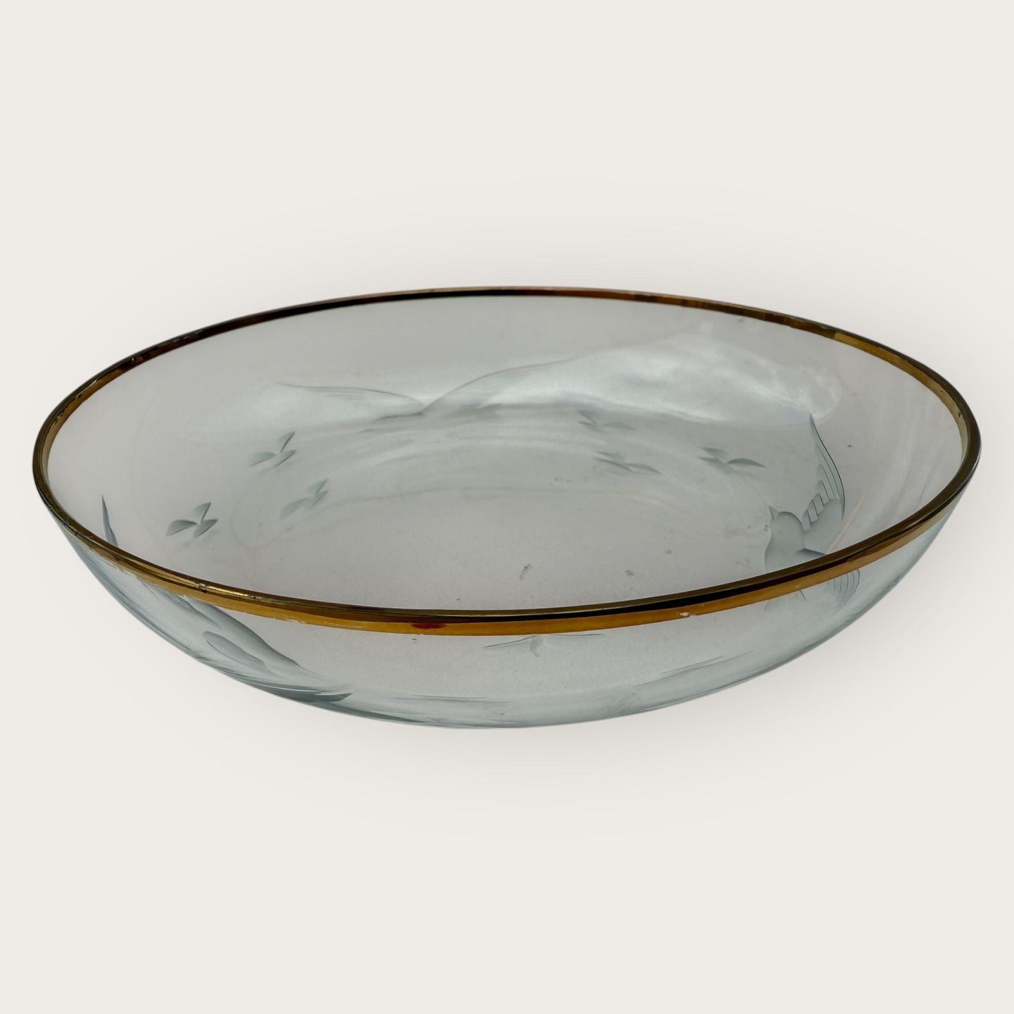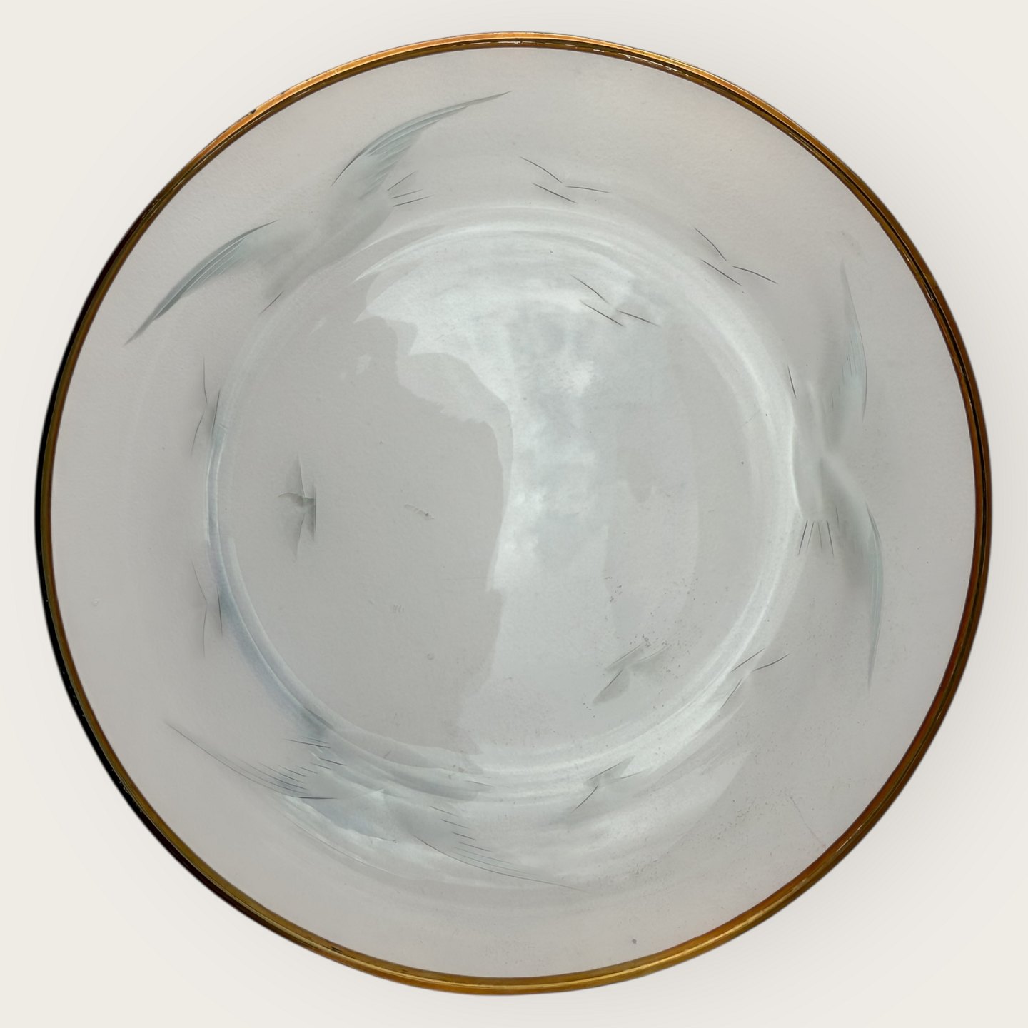 Lyngby Glass, Ice Cream Plates, Seagull Crystal glass with cuts and gold rim, 15.3cm in diameter *Slight wear on gold rims otherwise good condition*
