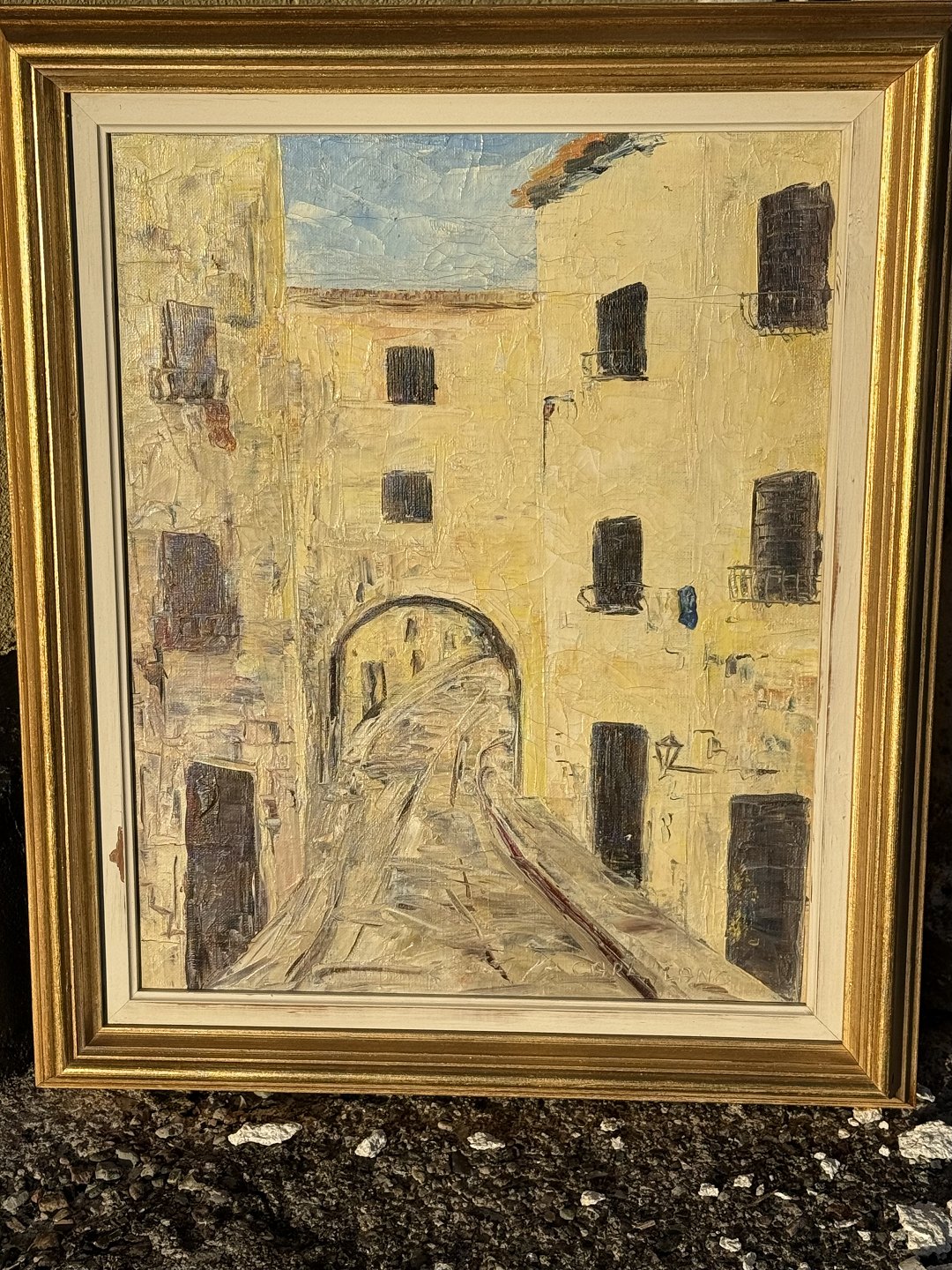 Carl Lang, Southern town motif, Oil painting on canvas, Dimensions with frame 51x43cm